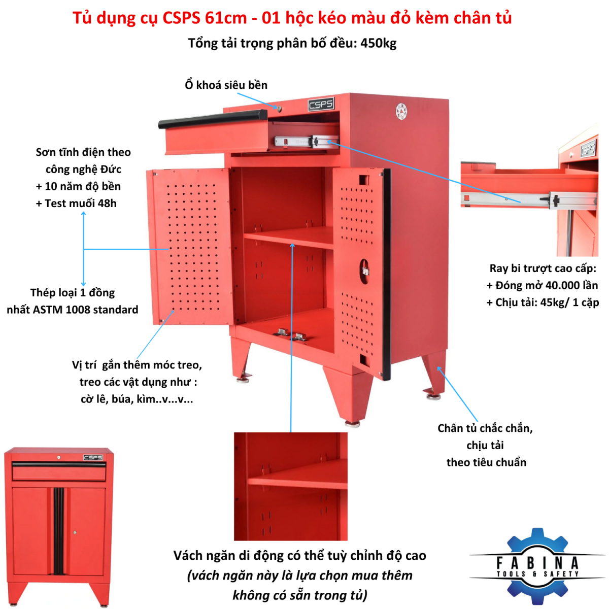 CSPS Red Tool Cabinet 61cm – 1 Drawer with Cabinet Legs