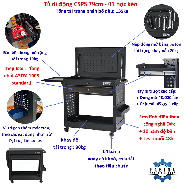 - Từ khóa: Tủ dụng cụ CSPS, Tủ đồ nghề CSPS, Tủ dụng cụ tiêu chuẩn Mỹ, Tủ CSPS