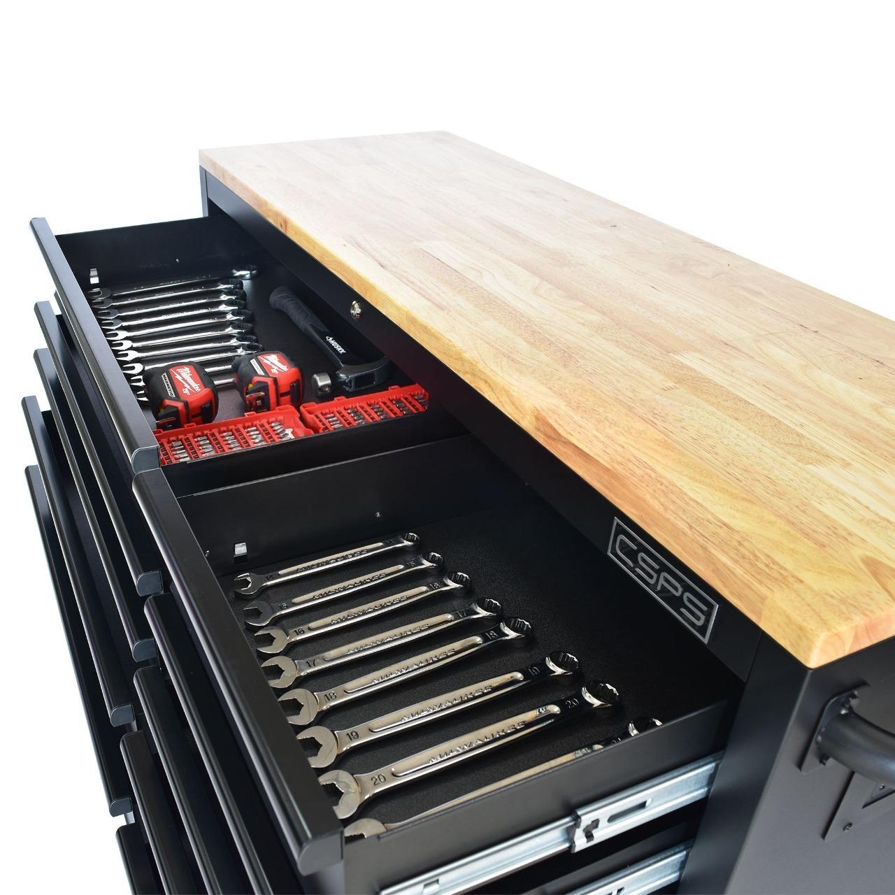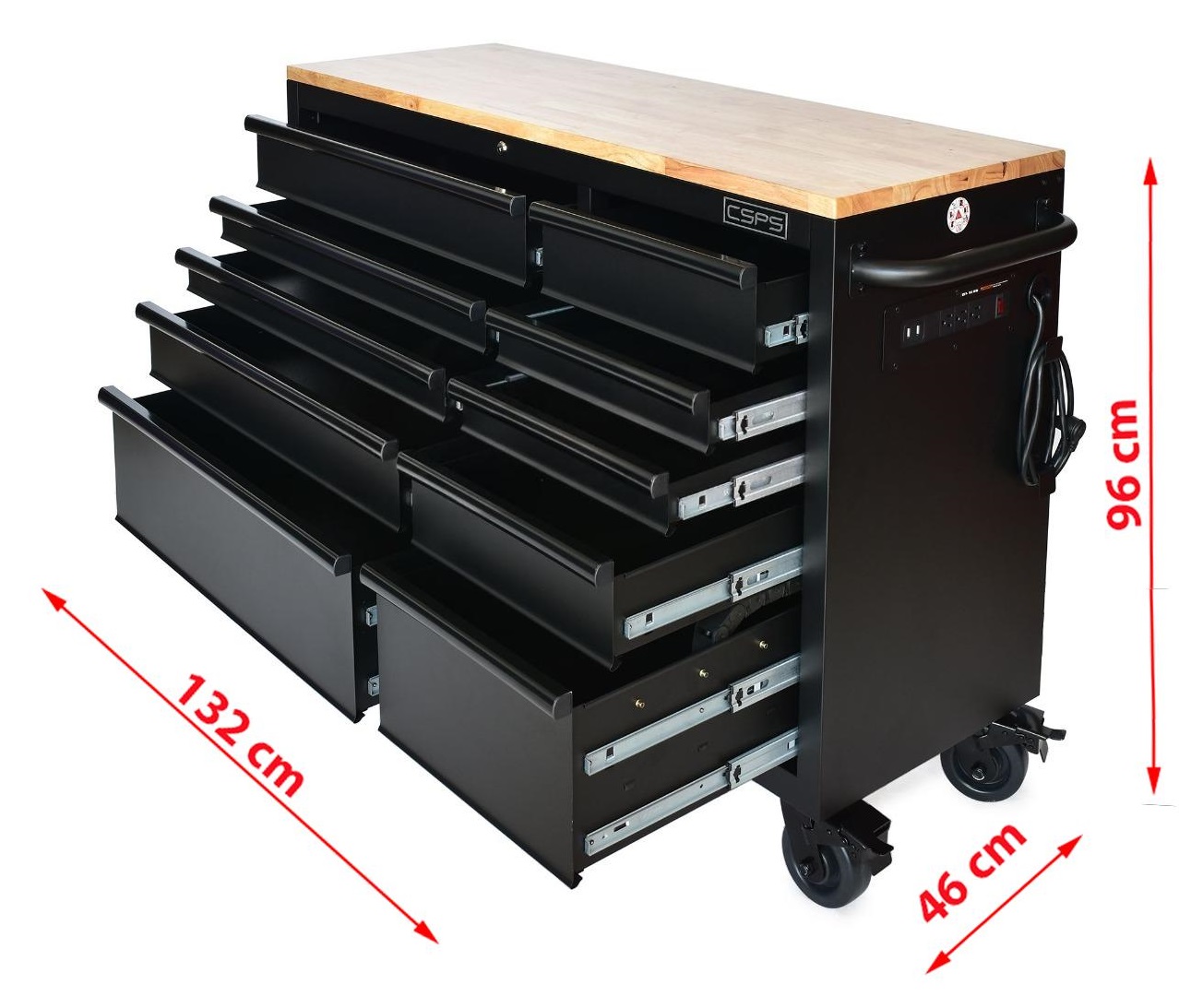 Tủ dụng cụ 10 ngăn kéo 132cm màu đen mờ mặt ván gỗ CSPS