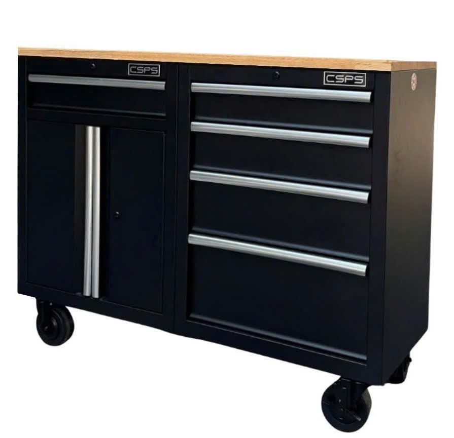 Tủ dụng cụ CSPS 122cm - 05 hộc kéo màu đen mặt ván gỗ (tay cầm trắng)