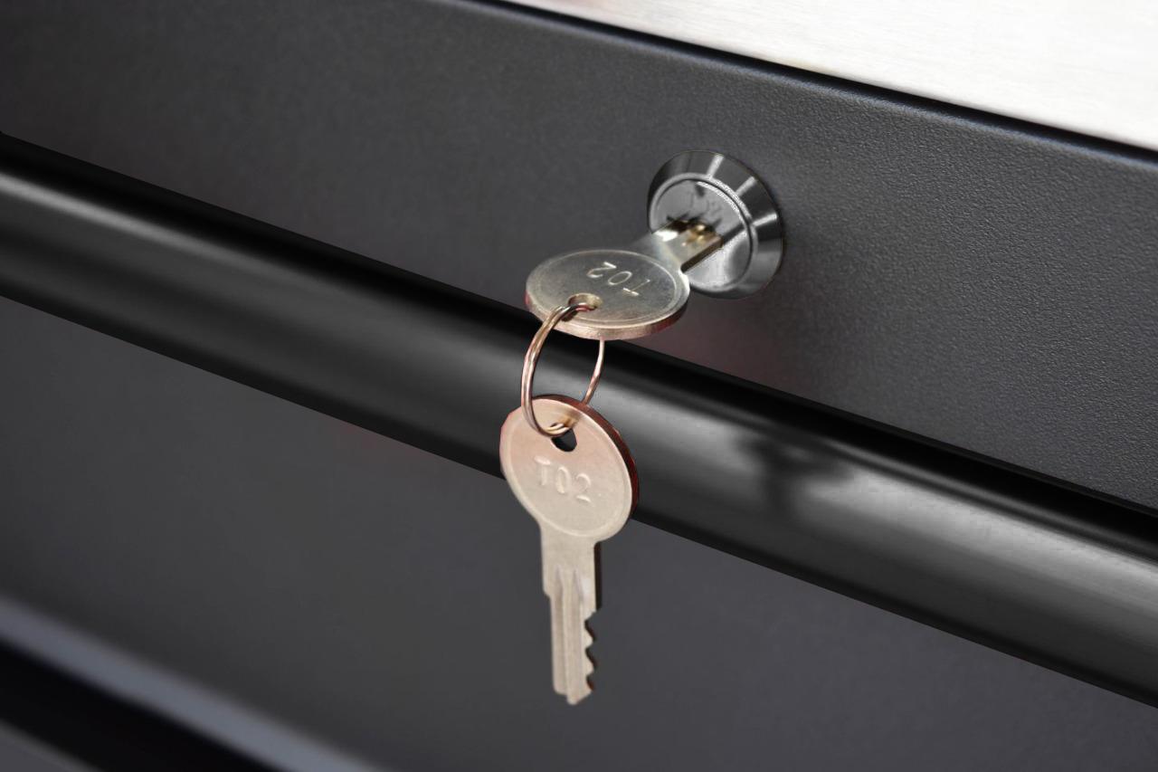 Khóa hộc kéo / Drawers lock: 01. Lực kéo bung khóa: tối thiểu 45 kg.