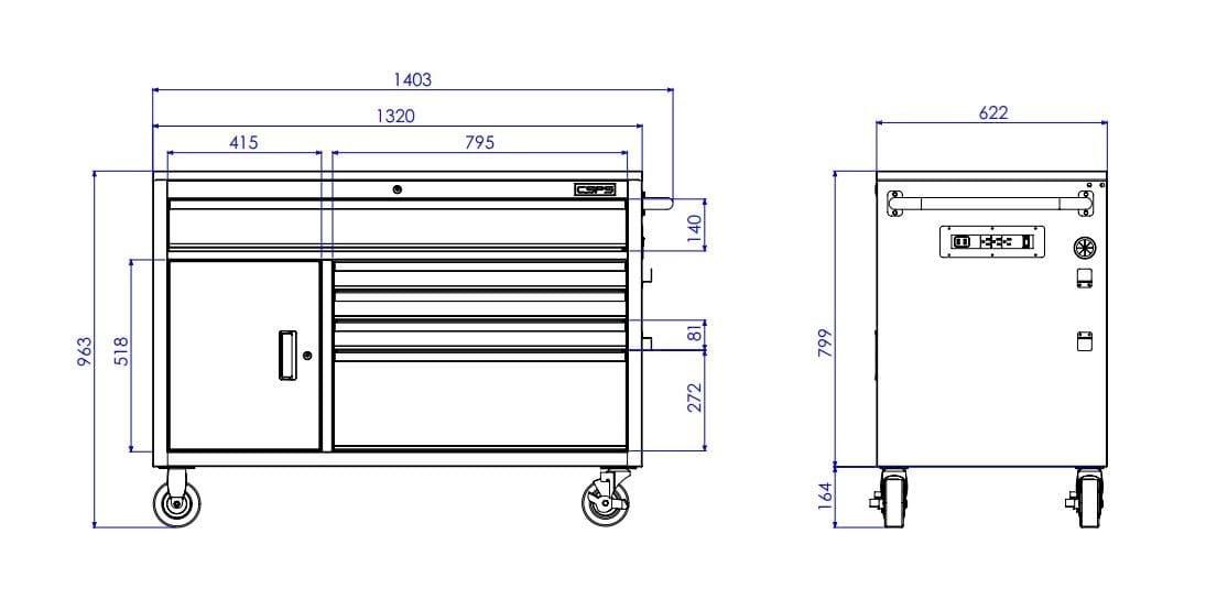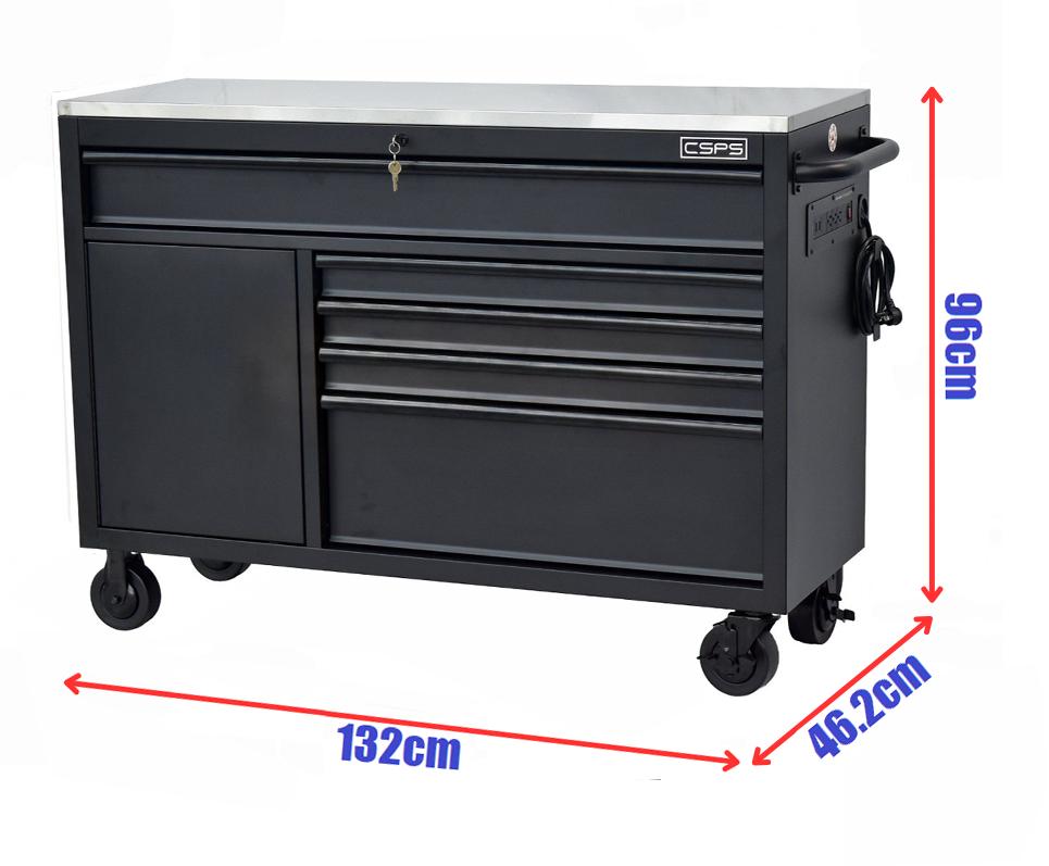 Tủ dụng cụ Tủ dụng cụ CSPS 132cm - 05 hộc kéo màu đen, giúp bạn sắp xếp khu vực làm việc hiệu quả, là một trang bị cần thiết cho nhà máy, garage, cửa hàng hay văn phòng làm việc / CSPS tool cabinet 132 cm – 05 drawers which is suitable for workshop, factory, garage, shop, office… will help you organize working area efficiently.
