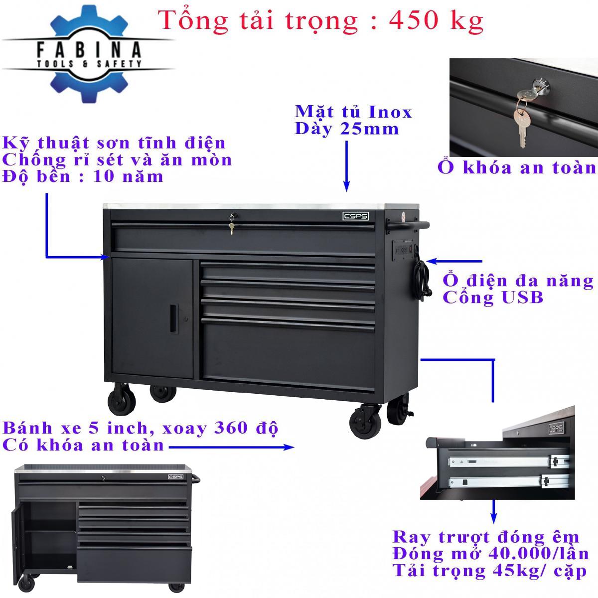 Tủ dụng cụ Tủ dụng cụ CSPS 132cm - 05 hộc kéo màu đen là một thiết kế mới của CSPS dành riêng cho người thợ Việt Nam với các lợi ích nổi bật: / CSPS tool cabinet 132 cm – 05 drawers are a new design of CSPS specialized for Vietnamese with outstanding benefits: