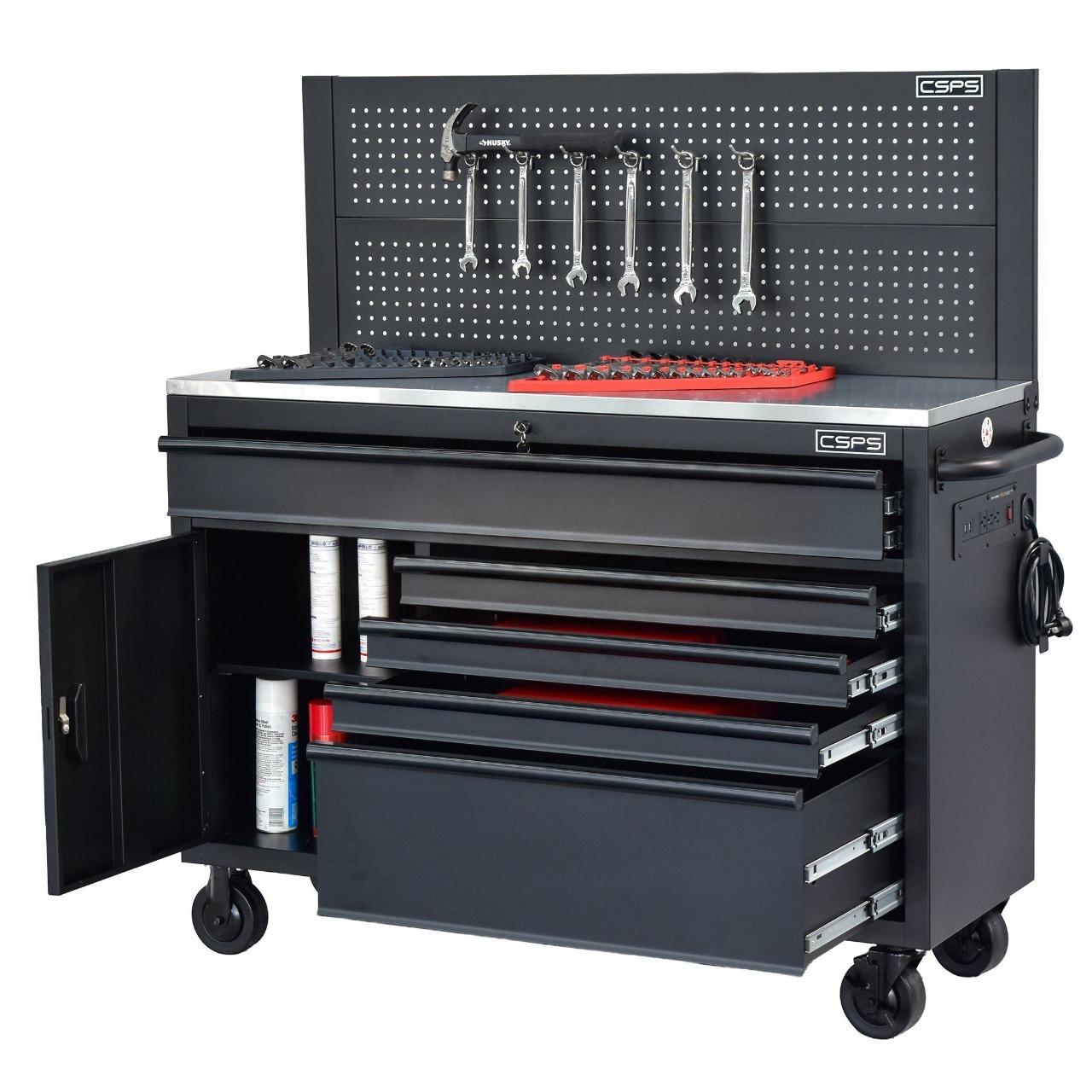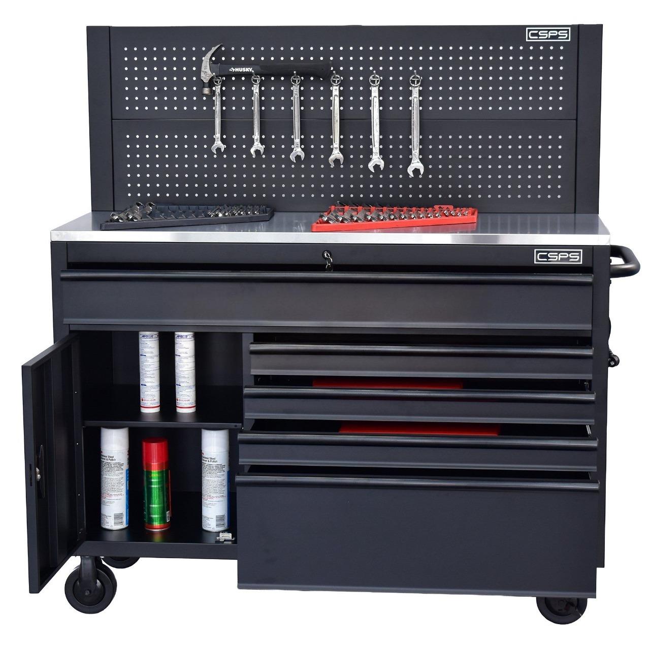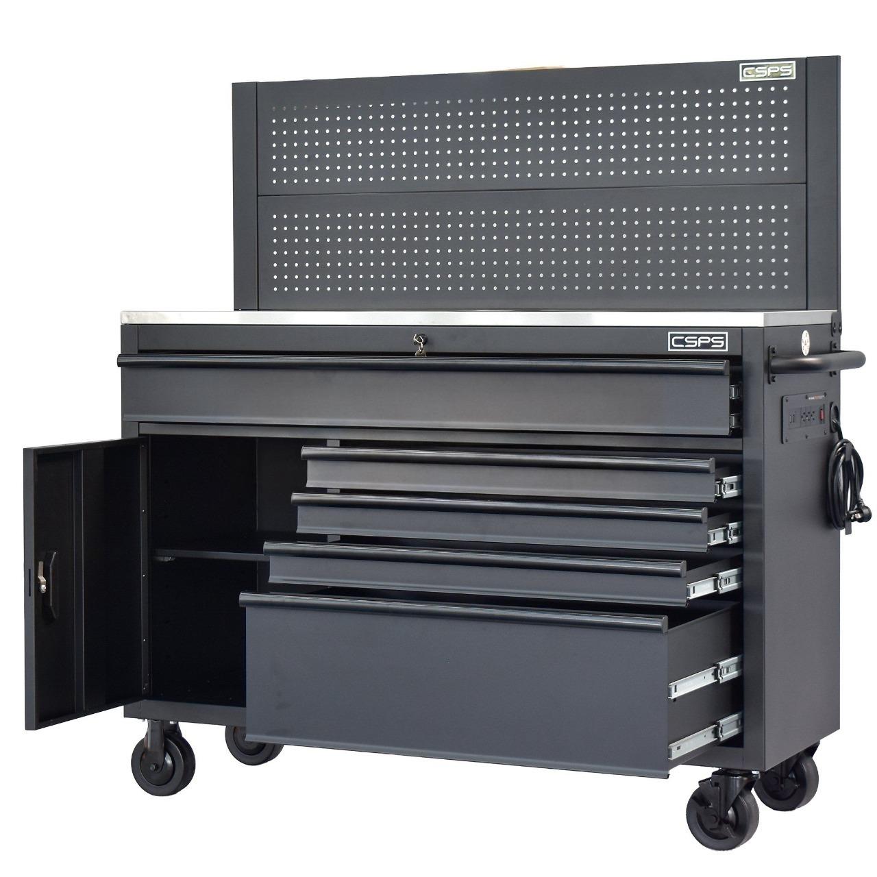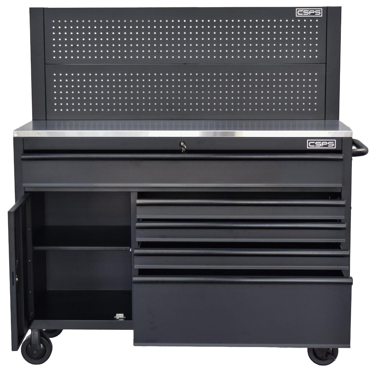 Tủ dụng cụ Tủ dụng cụ CSPS 132cm - 05 hộc kéo màu đen, giúp bạn sắp xếp khu vực làm việc hiệu quả, là một trang bị cần thiết cho nhà máy, garage, cửa hàng hay văn phòng làm việc / CSPS tool cabinet 132 cm – 05 drawers which is suitable for workshop, factory, garage, shop, office… will help you organize working area efficiently.