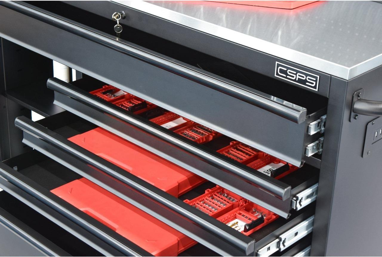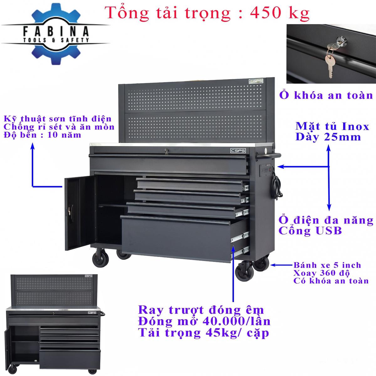 Tủ dụng cụ Tủ dụng cụ CSPS 132cm - 05 hộc kéo màu đen là một thiết kế mới của CSPS dành riêng cho người thợ Việt Nam với các lợi ích nổi bật: / CSPS tool cabinet 132 cm – 05 drawers are a new design of CSPS specialized for Vietnamese with outstanding benefits: