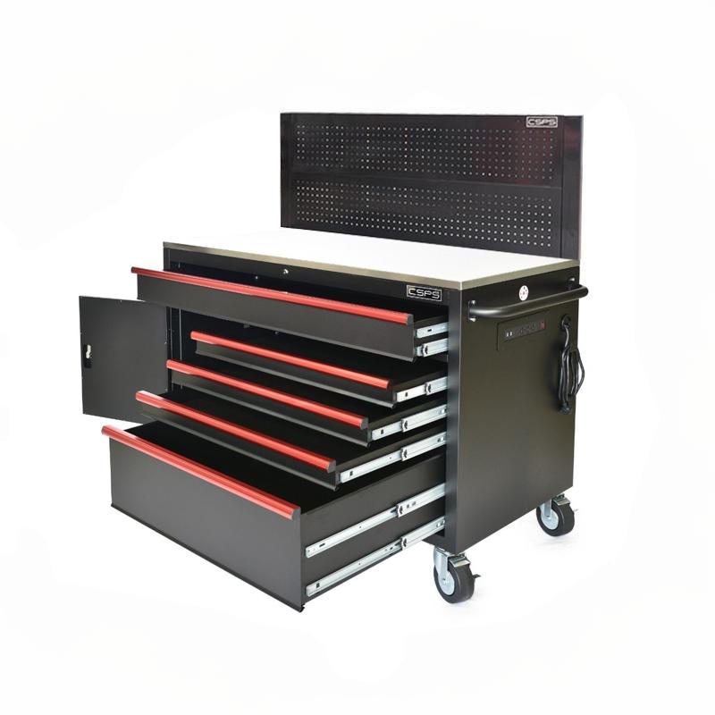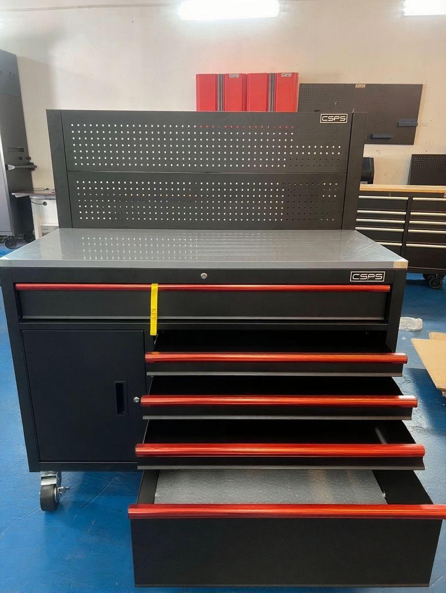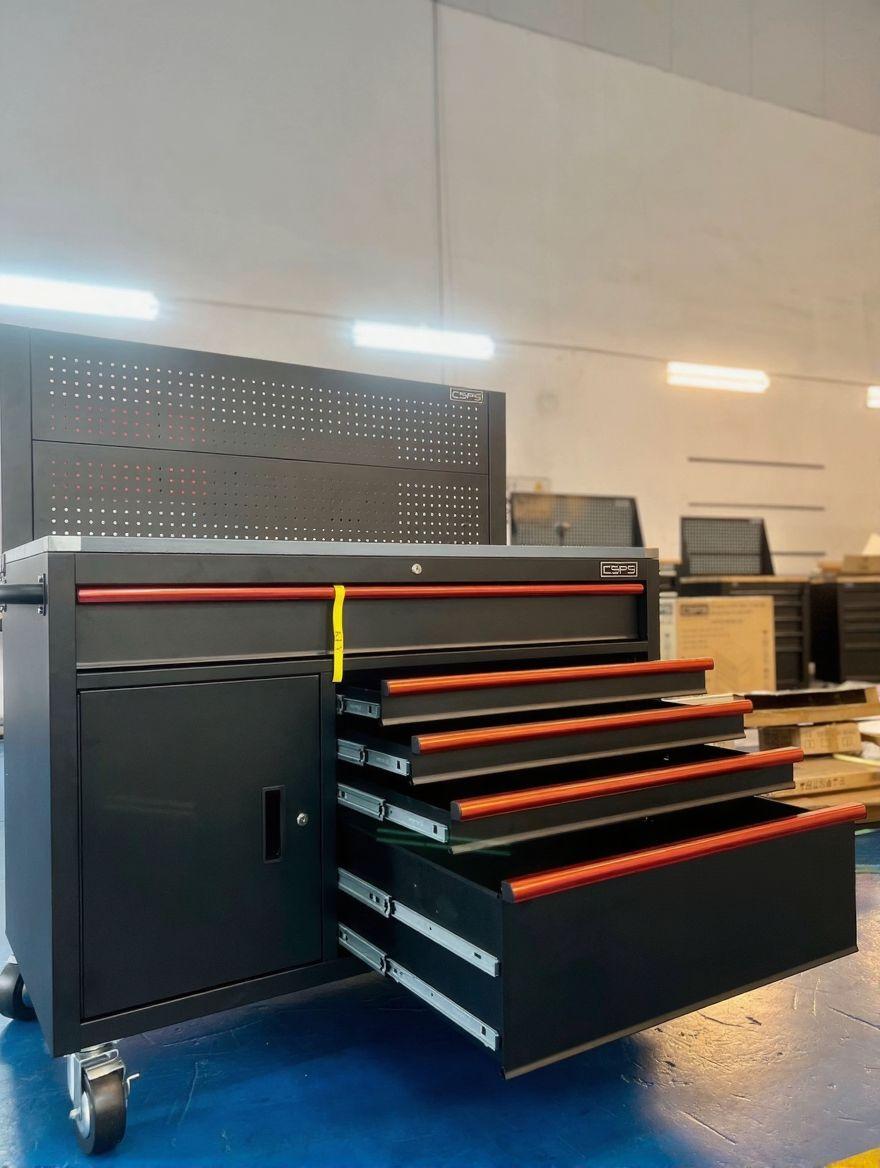 Tủ dụng cụ Tủ dụng cụ CSPS 132cm - 05 hộc kéo màu đen, giúp bạn sắp xếp khu vực làm việc hiệu quả, là một trang bị cần thiết cho nhà máy, garage, cửa hàng hay văn phòng làm việc / CSPS tool cabinet 132 cm – 05 drawers which is suitable for workshop, factory, garage, shop, office… will help you organize working area efficiently.