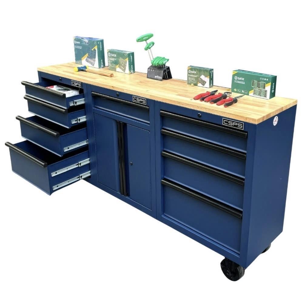 Tủ dụng cụ CSPS 183cm - 09 hộc kéo màu xanh dương mặt ván gỗ