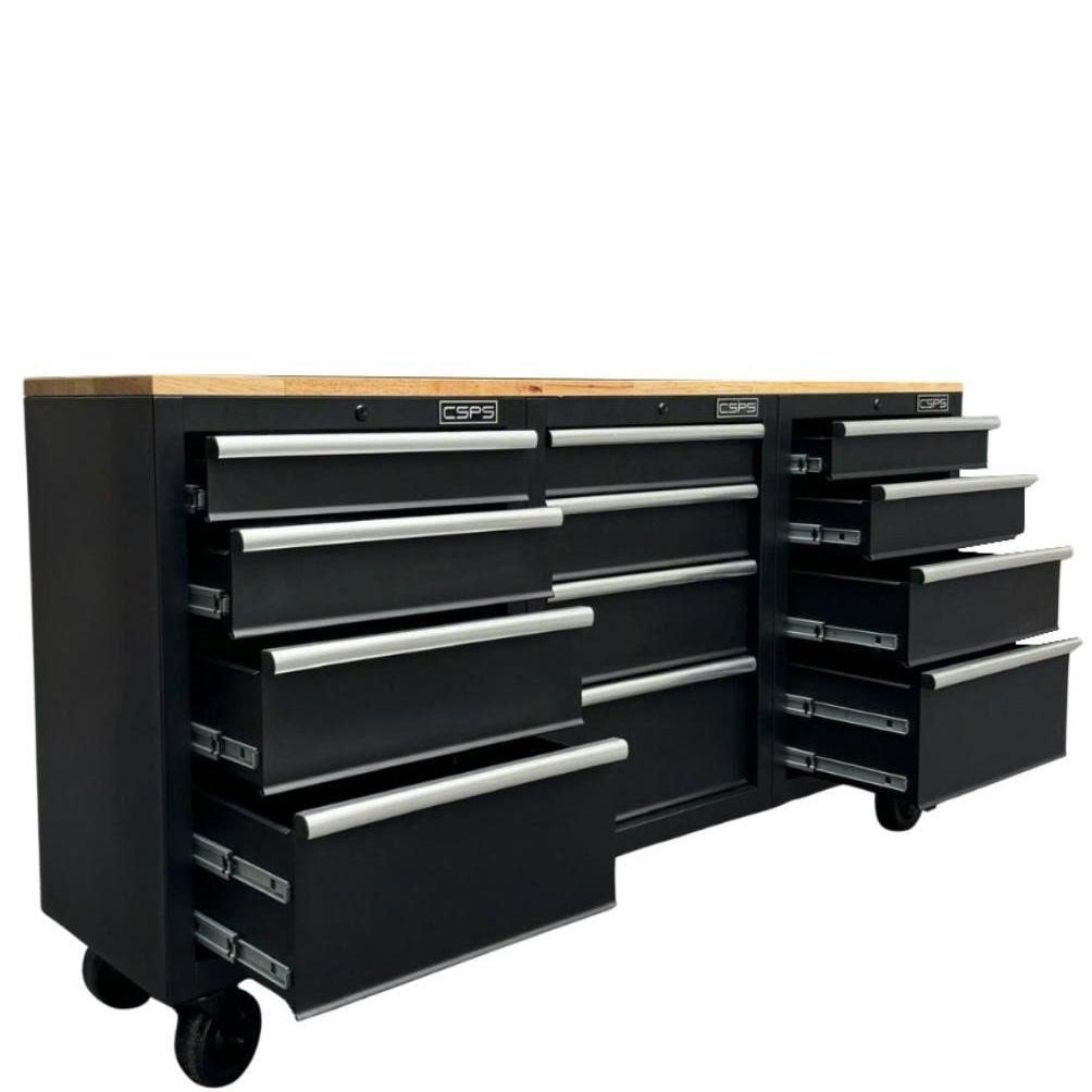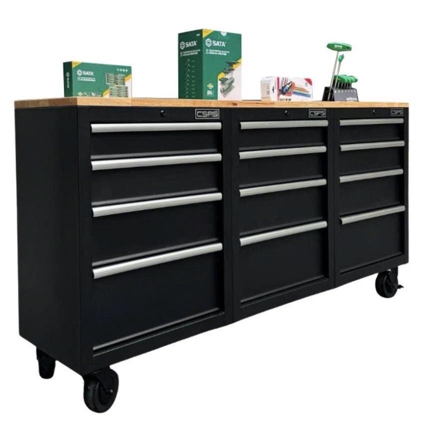 Tủ dụng cụ CSPS 183cm - 12 hộc kéo màu đen mặt ván gỗ (tay nắm trắng)