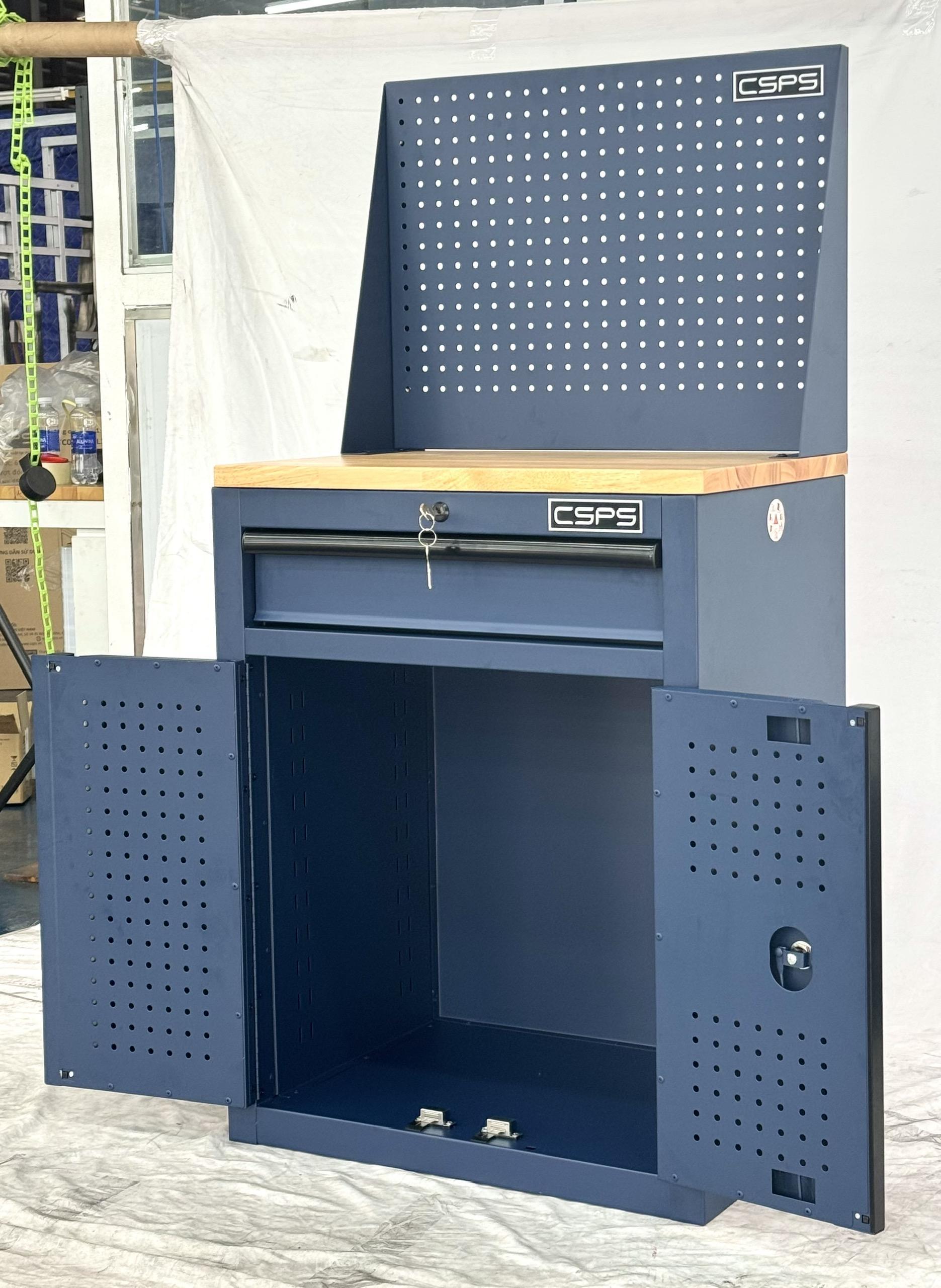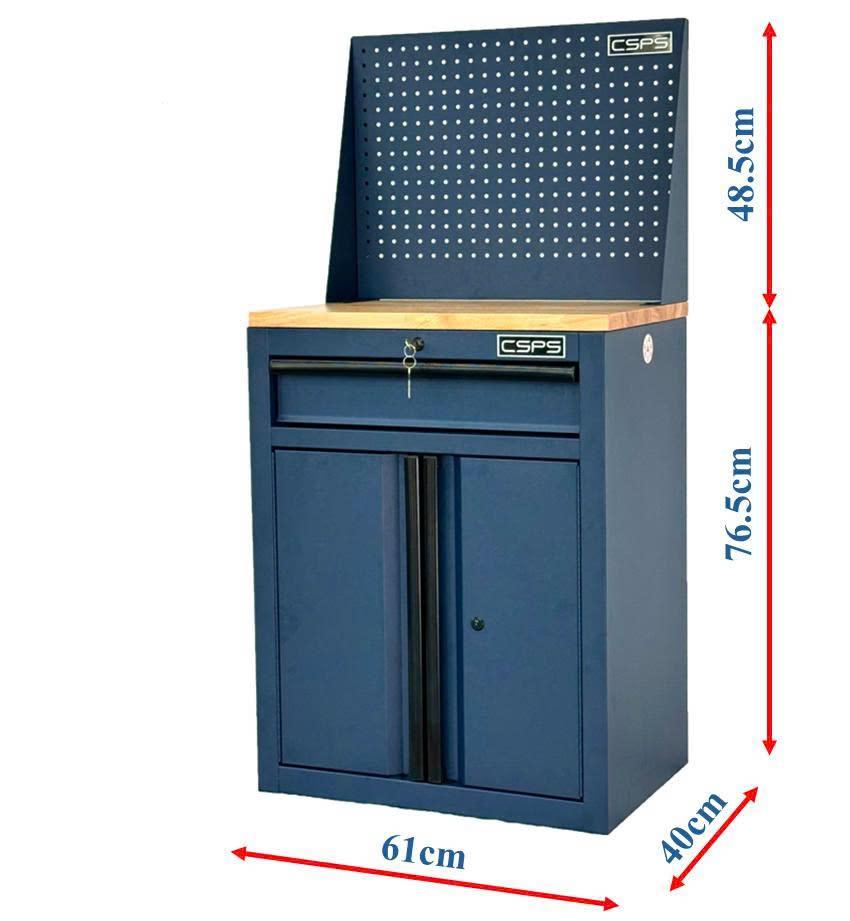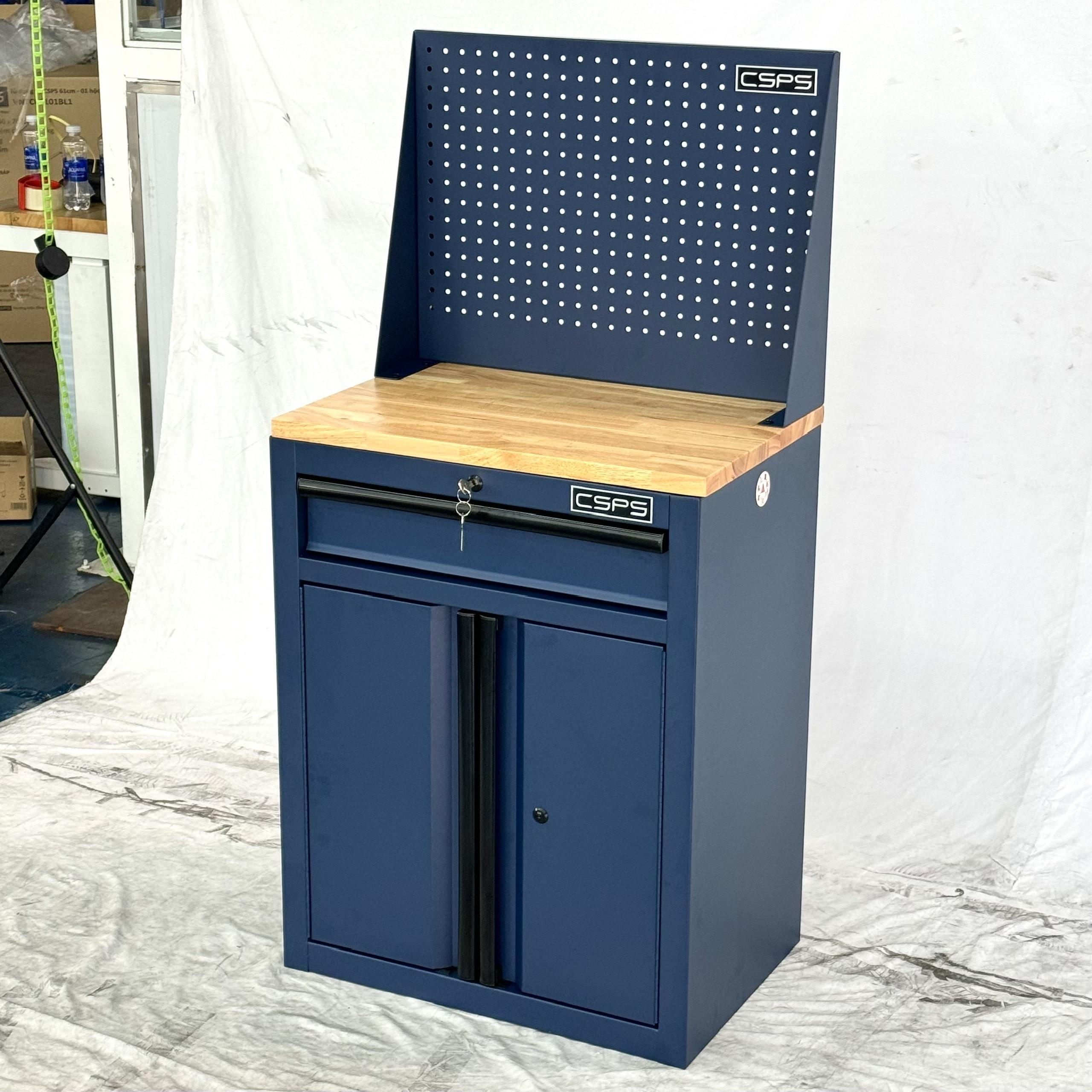 Tủ dụng cụ CSPS 61cm - 01 hộc kéo màu xanh dương kèm ván gỗ vách lưới