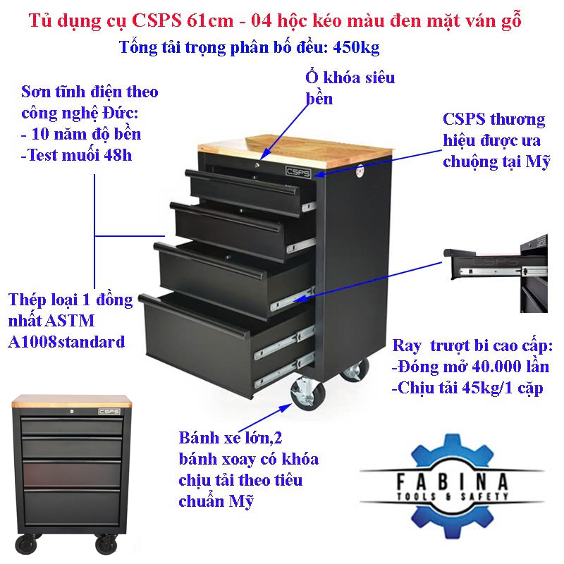 + Tải trọng / Capacity: 45 kg / hộc kéo.
