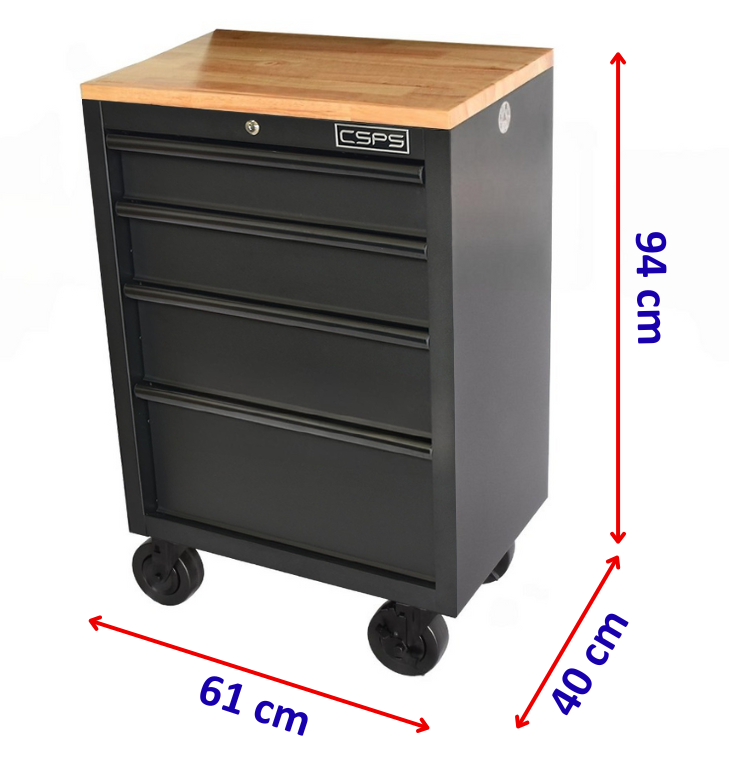 Kích thước sản phẩm/ Product dimension: 61cm W x 40cm D x 94cm H (Đã bao gồm chiều cao của bánh xe và ván gỗ)
