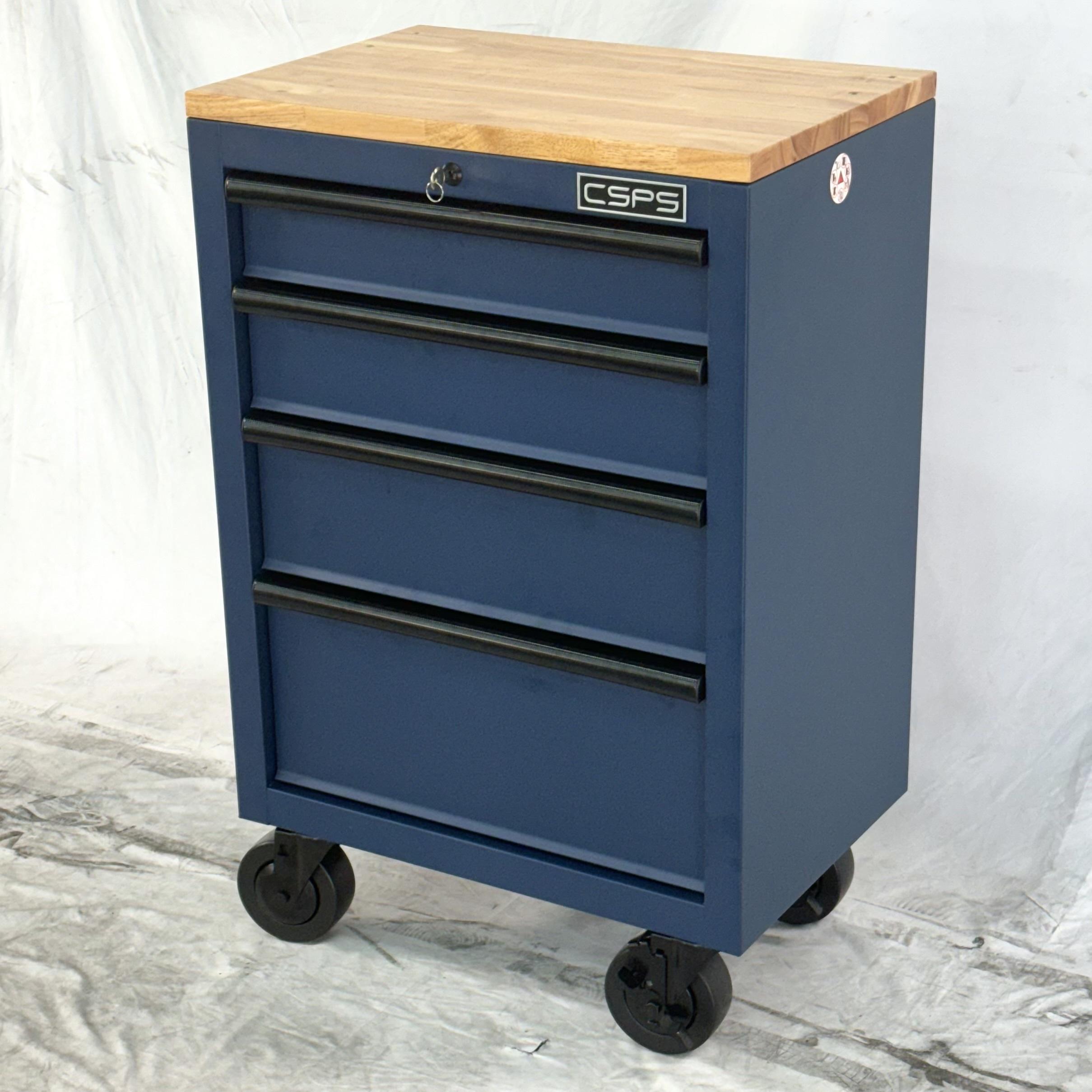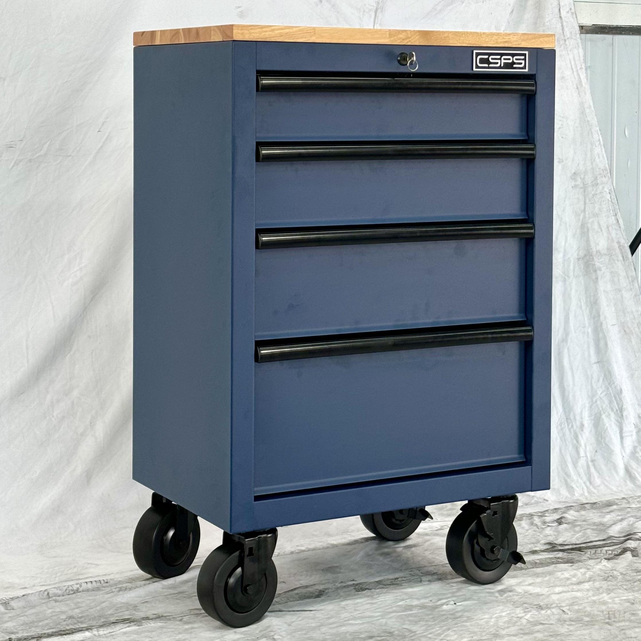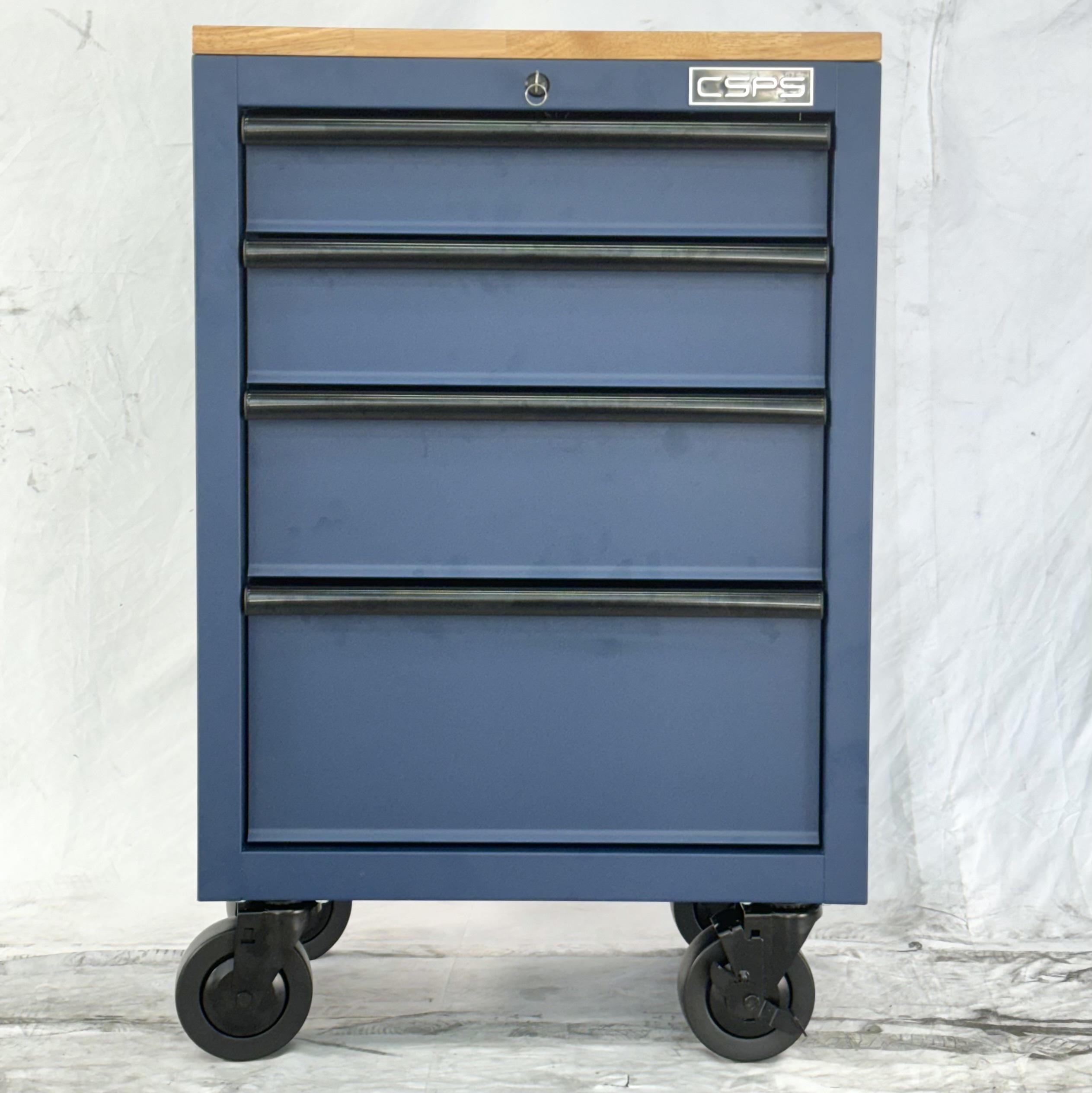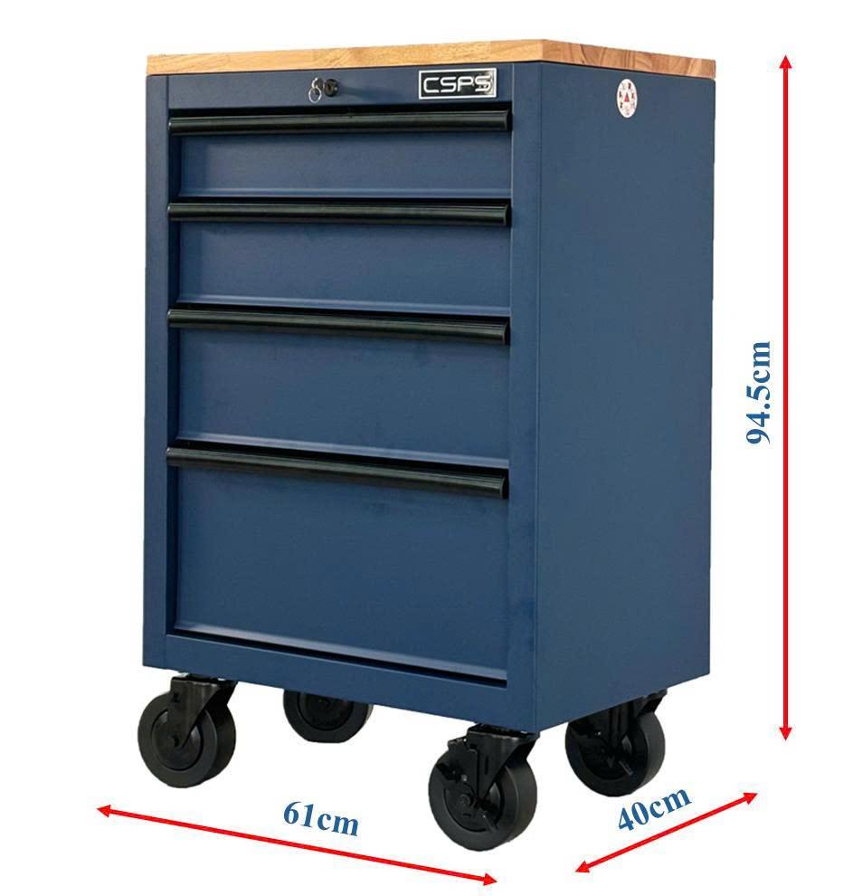 Tủ dụng cụ CSPS 61cm - 04 hộc kéo màu xanh dương kèm bánh xe và ván gỗ