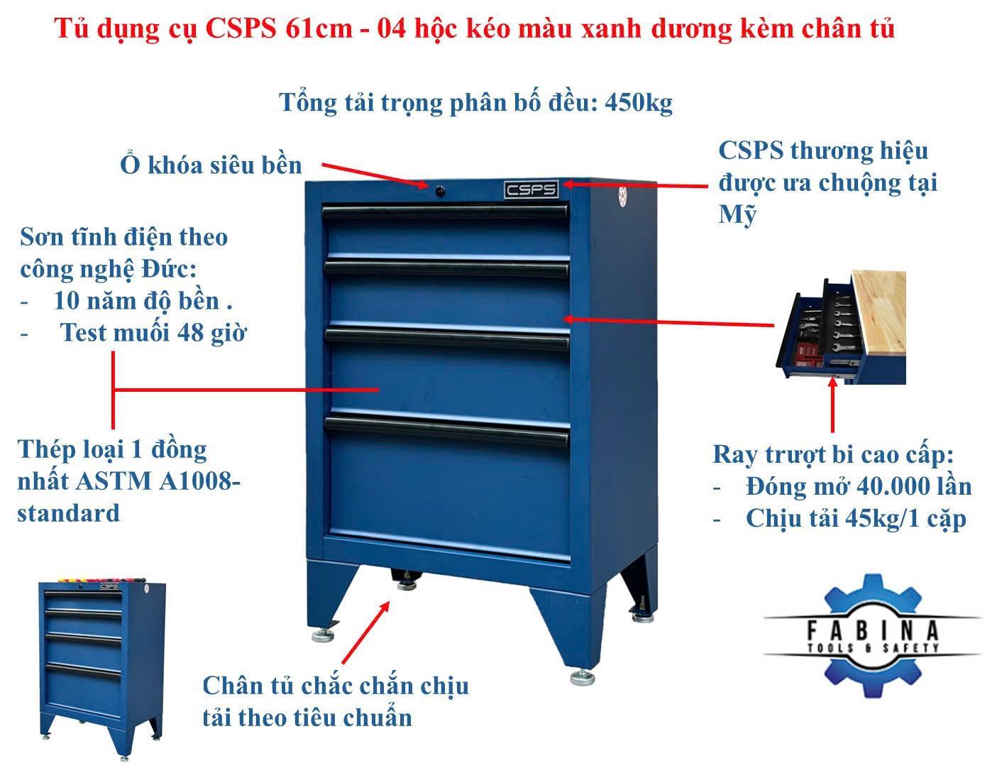 Tủ dụng cụ CSPS 61cm - 04 hộc kéo màu xanh dương kèm chân tủ