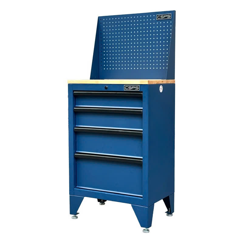 Tủ dụng cụ CSPS 61cm - 04 hộc kéo màu xanh dương kèm ván gỗ vách lưới và chân tủ