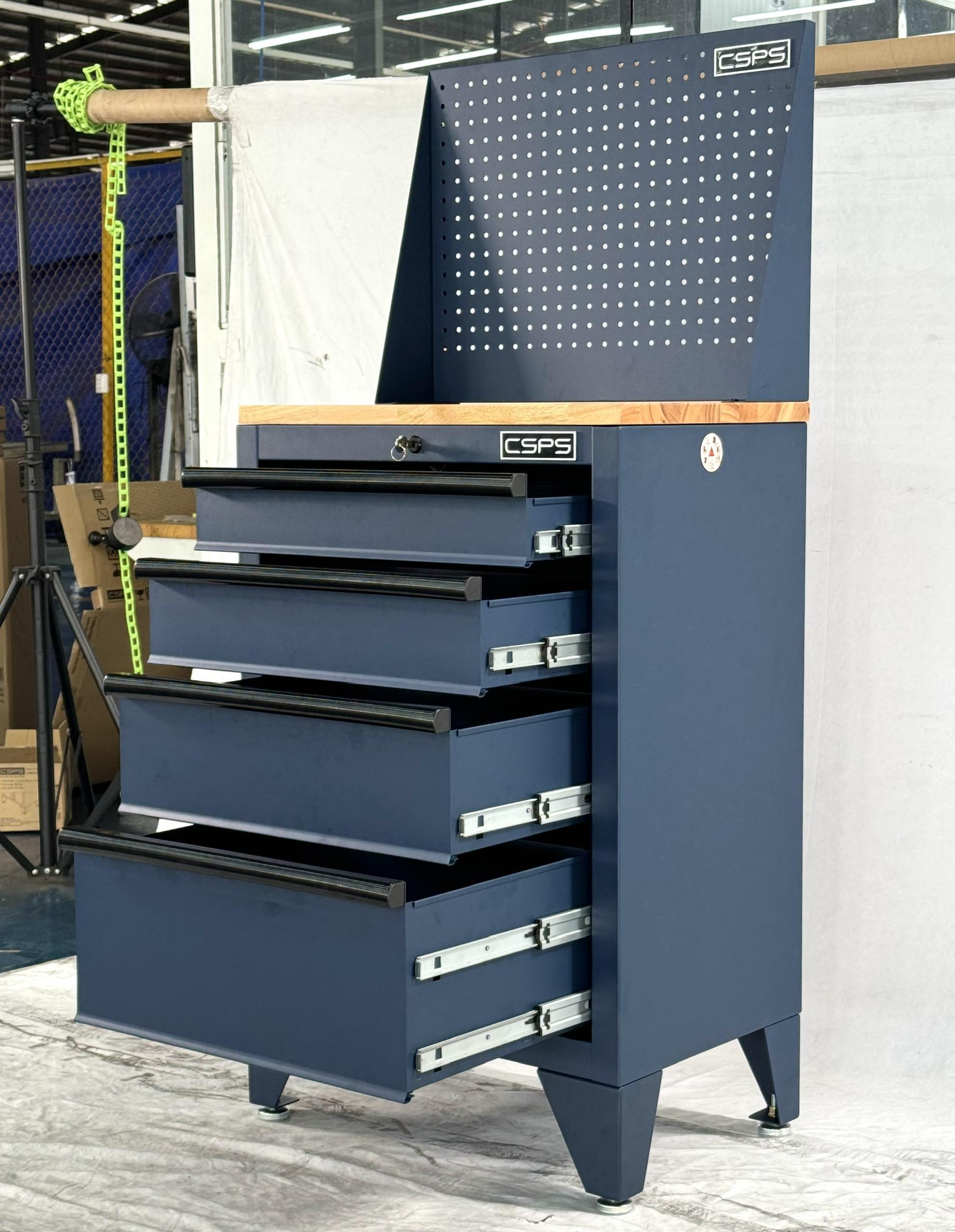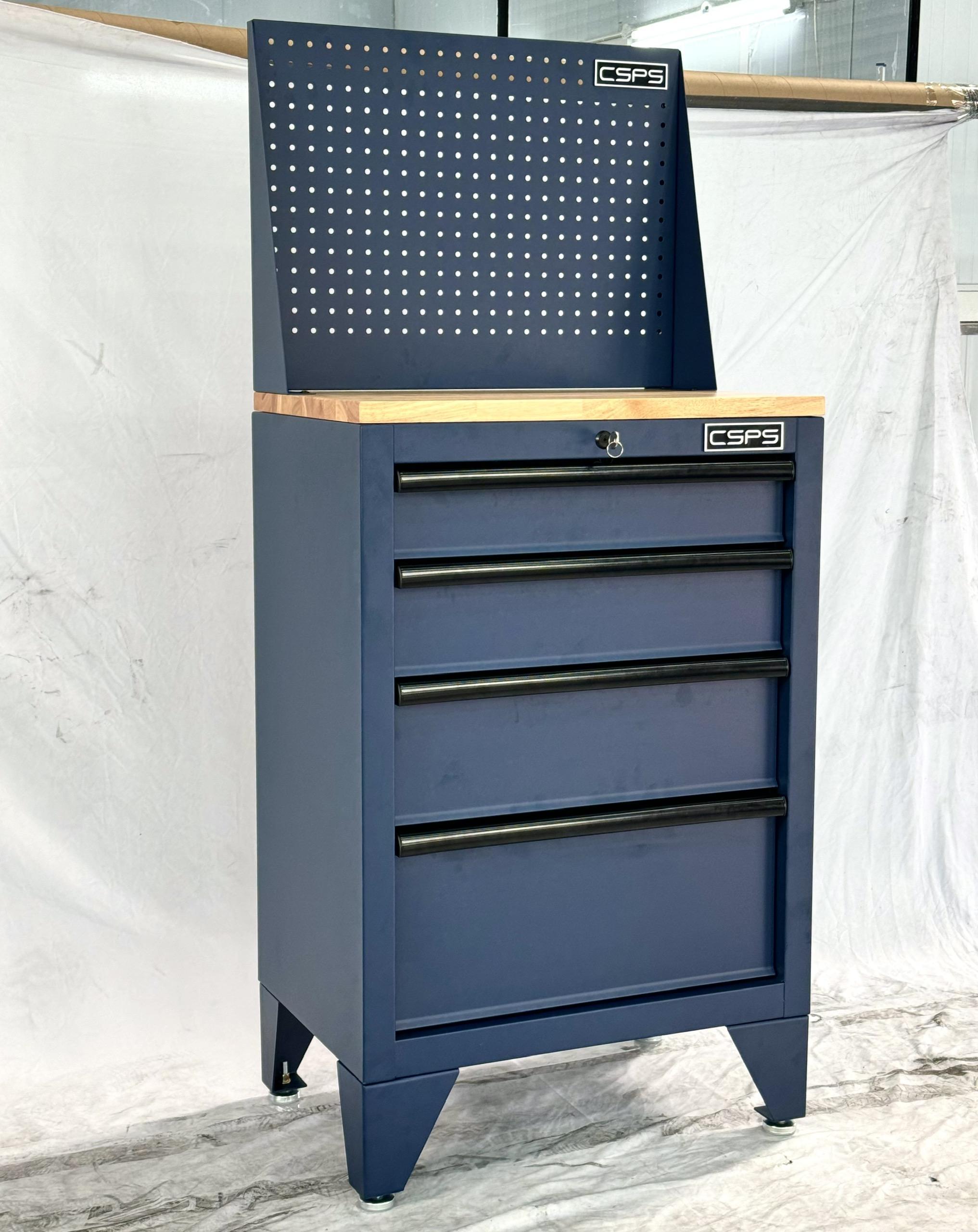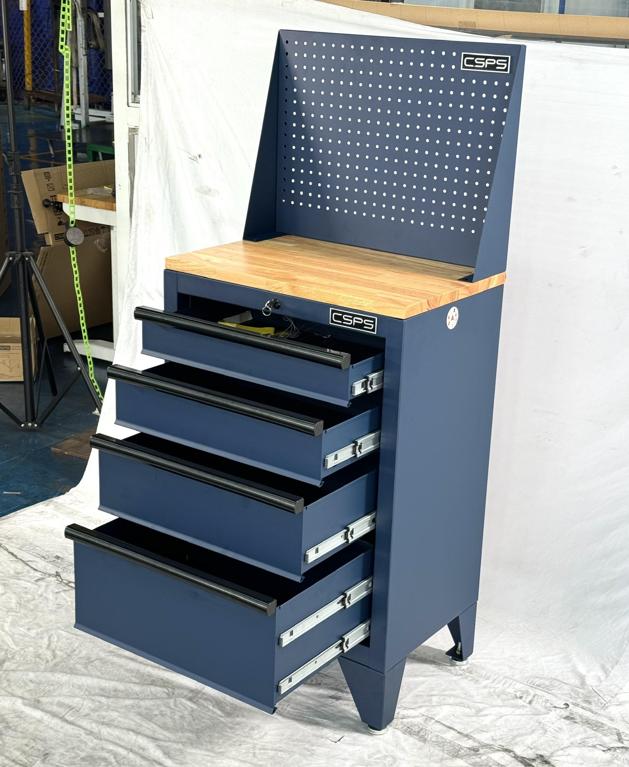 Tủ dụng cụ CSPS 61cm - 04 hộc kéo màu xanh dương kèm ván gỗ vách lưới và chân tủ