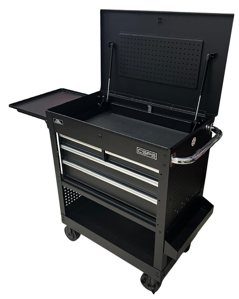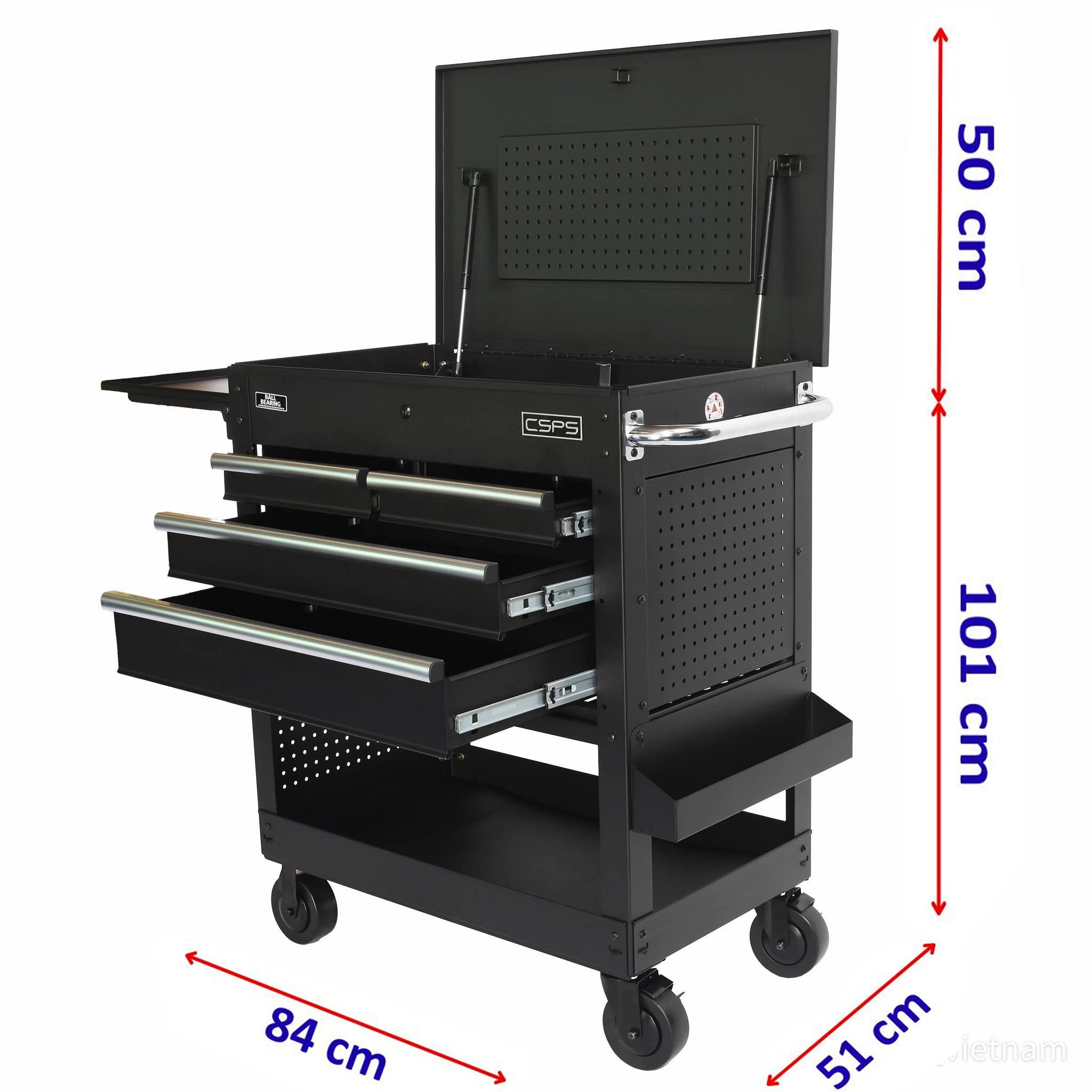 Tủ đồ nghề, tủ dụng cụ di động 84cm, giúp bạn sắp xếp khu vực làm việc hiệu quả, là một trang bị cần thiết cho nhà máy, garage, cửa hàng hay văn phòng làm việc. Bảo hành 02 năm. Tiêu chuẩn Mỹ. Sản phẩm của CSPS. Ray trượt bi. Sơn tĩnh điện.