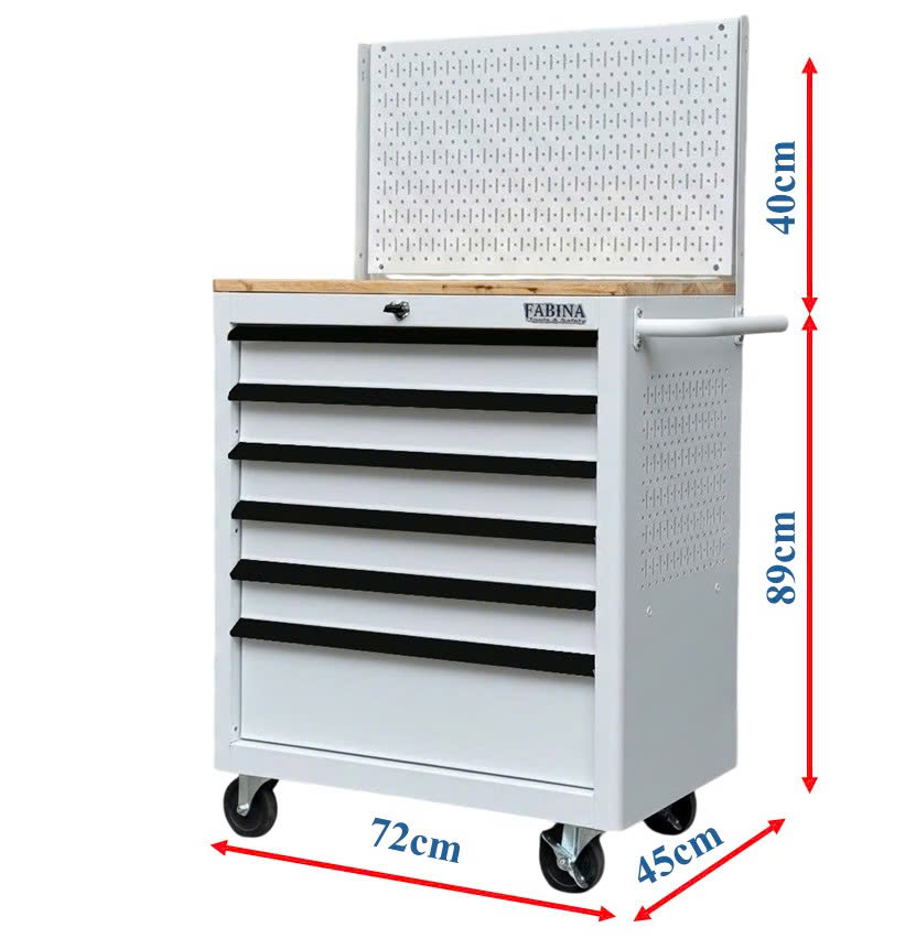 Tủ dụng cụ 6 hộc kéo màu trắng nhám kèm vách lưới Fabina