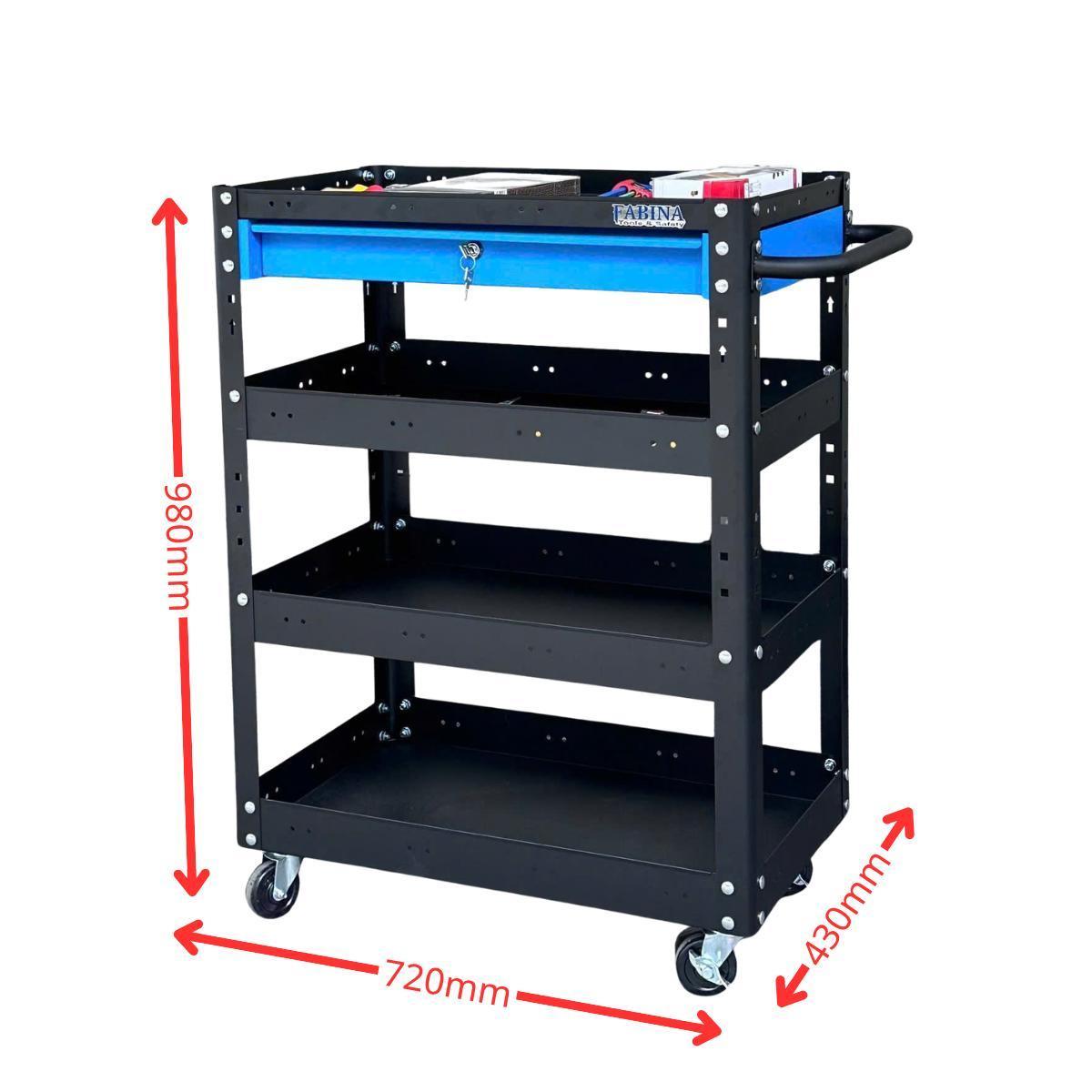 Xe đẩy 4 tầng cao 980mm màu đen hộc kéo xanh dương
