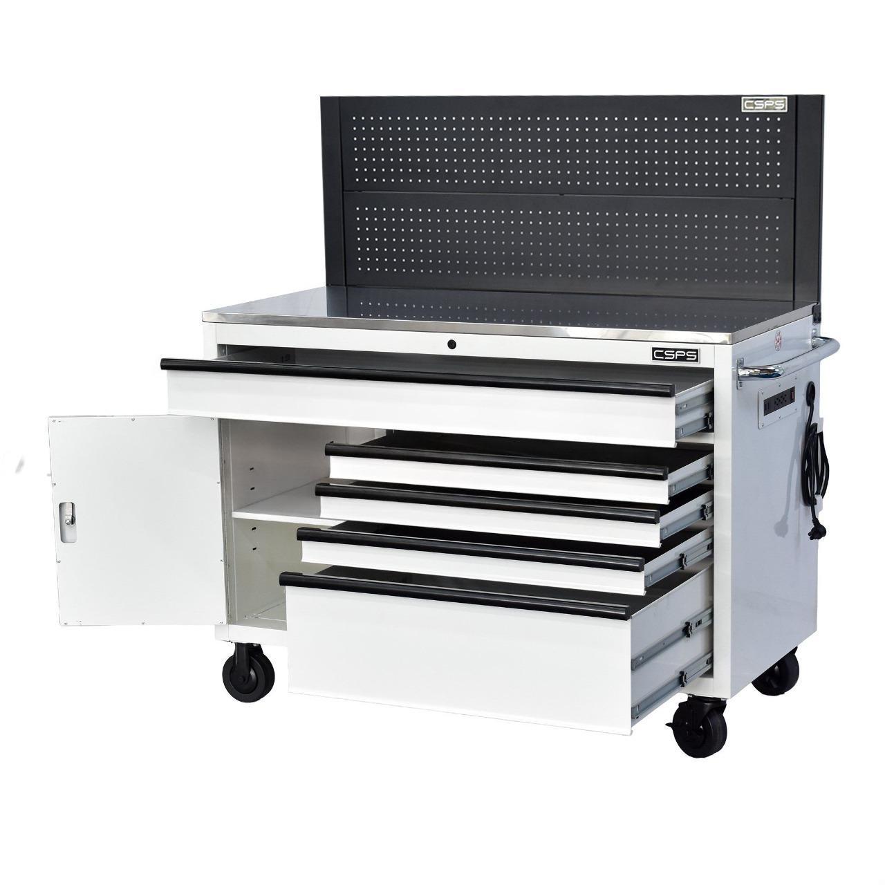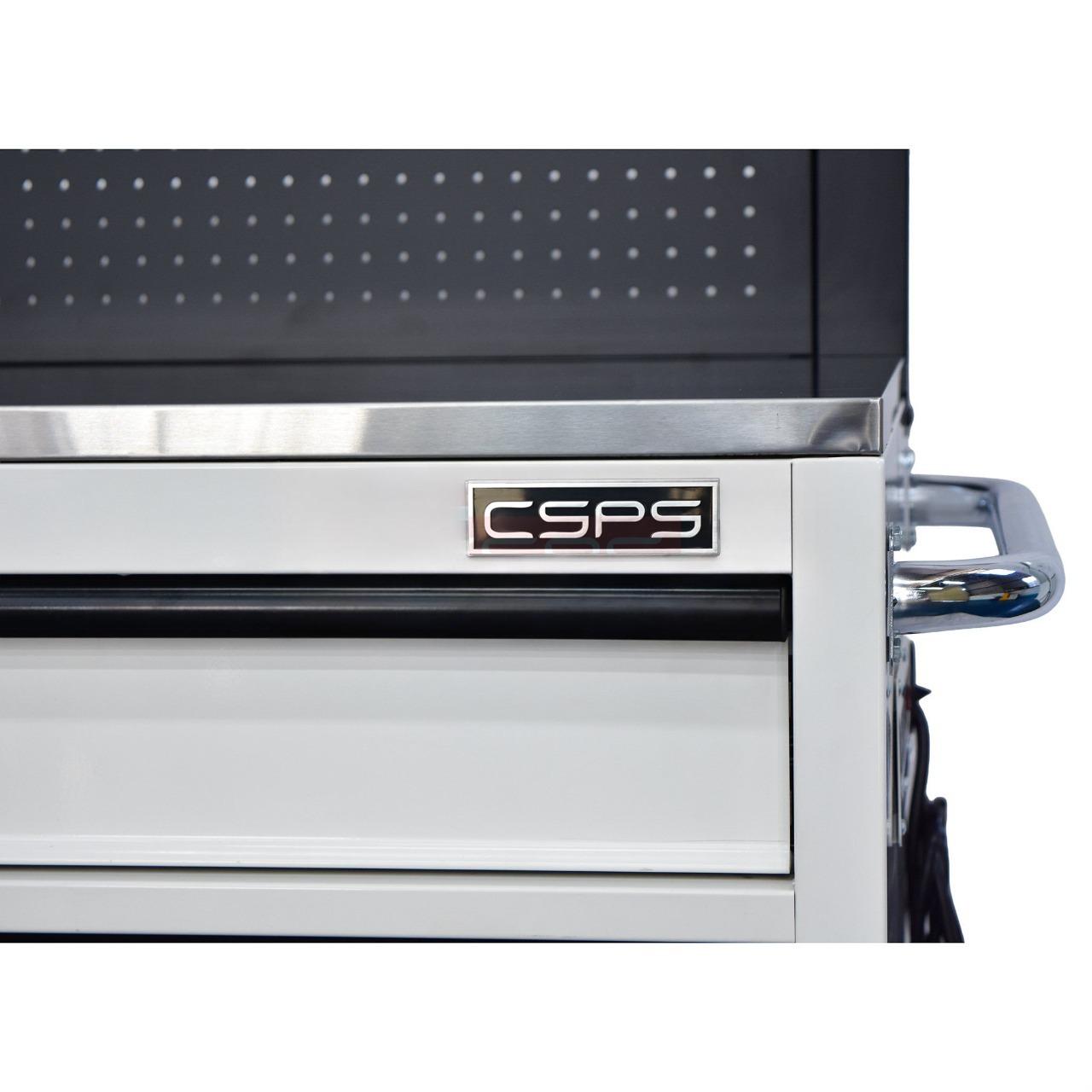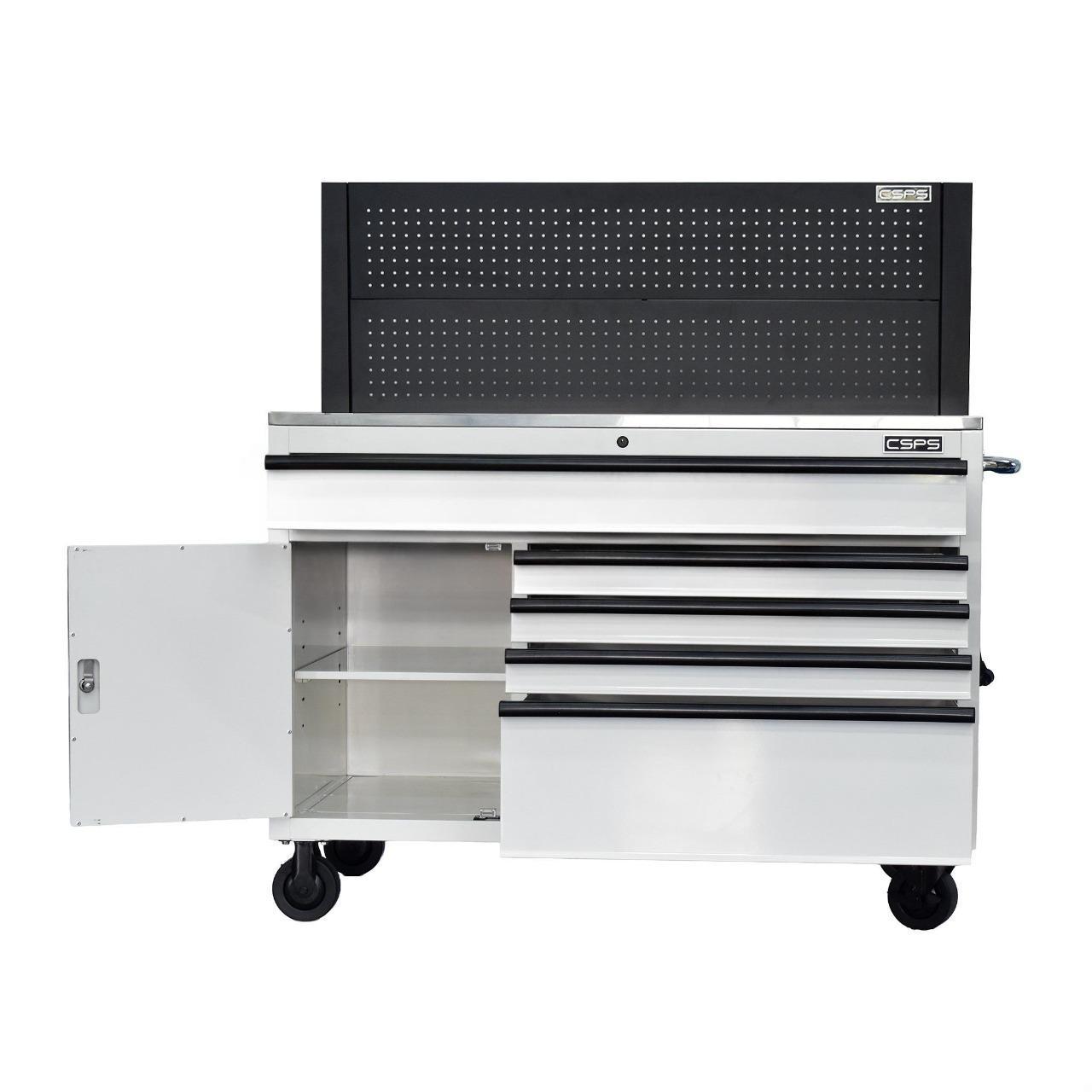 CSPS 132cm Tool Cabinet – 5 Drawers in White with Black Pegboard