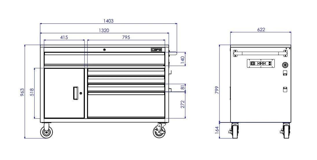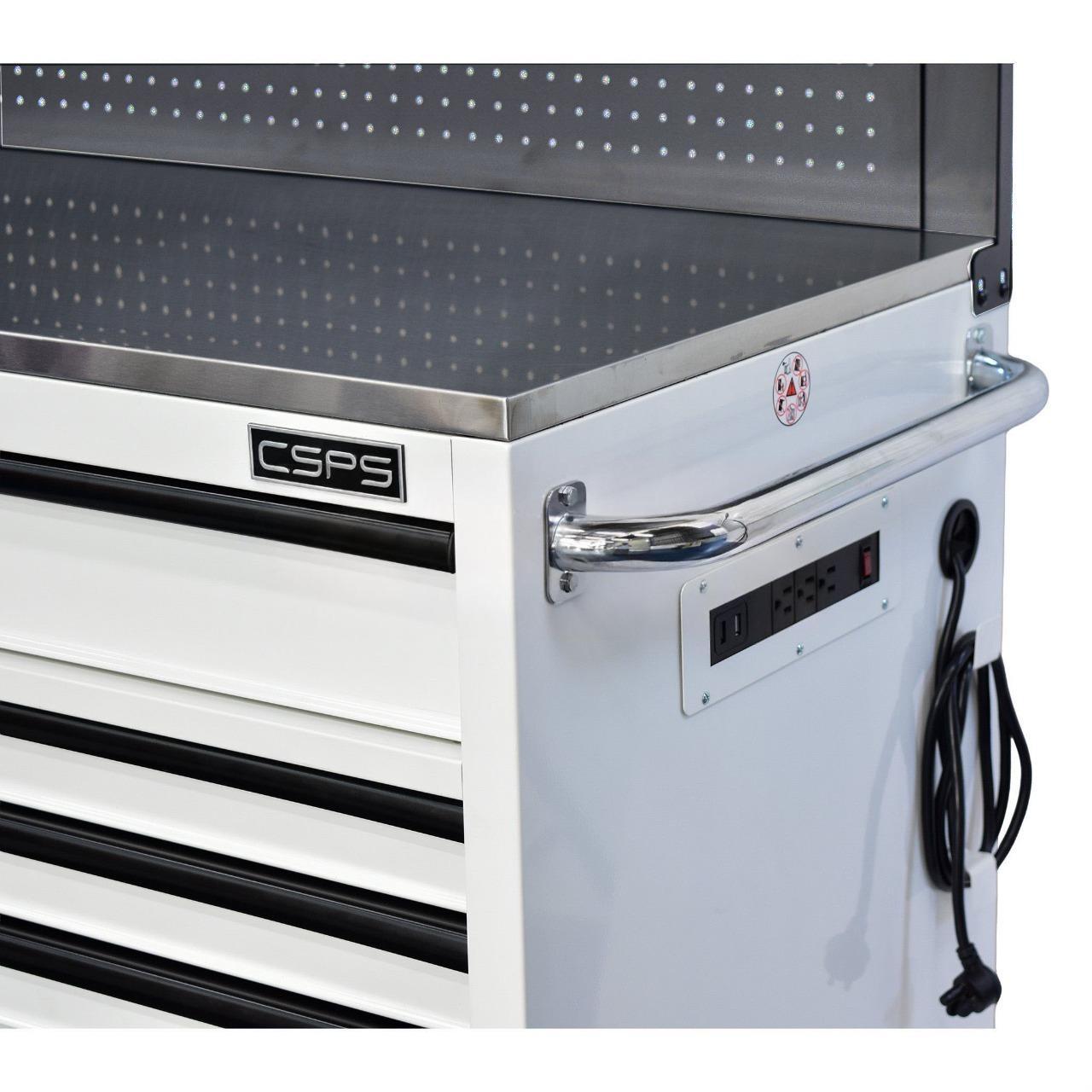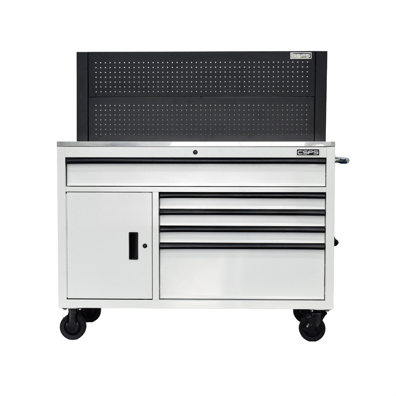 CSPS 132cm Tool Cabinet – 5 Drawers in White with Black Pegboard