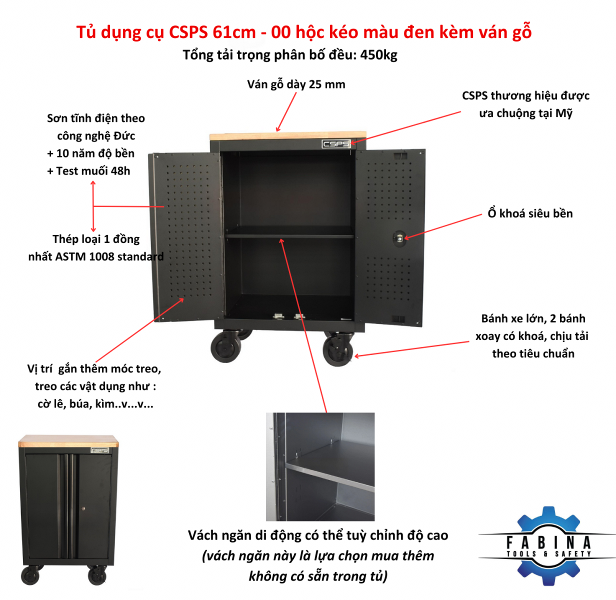 Black CSPS Tool Cabinet 61cm – 00 drawers with wooden top