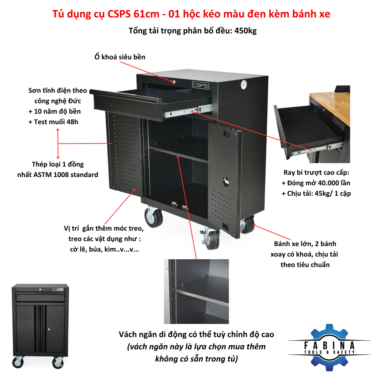 CSPS Tool Cabinet Black 61cm - 01 Drawer