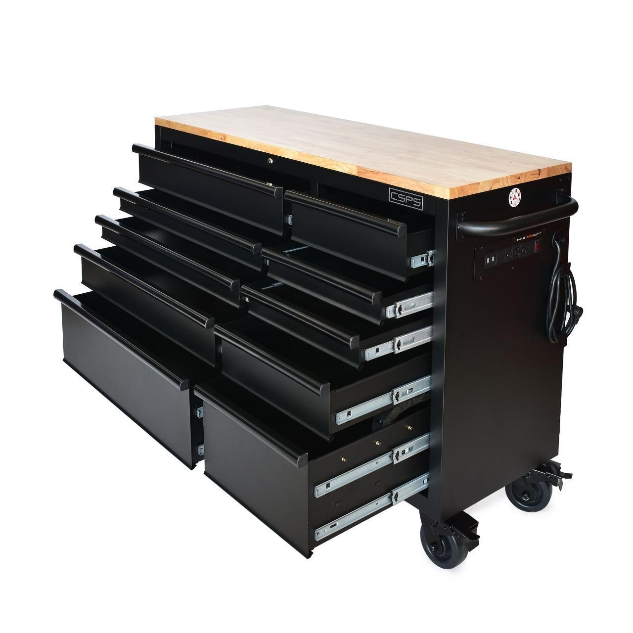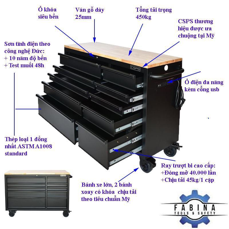Tủ dụng cụ 10 ngăn kéo 132cm màu đen mờ mặt ván gỗ CSPS