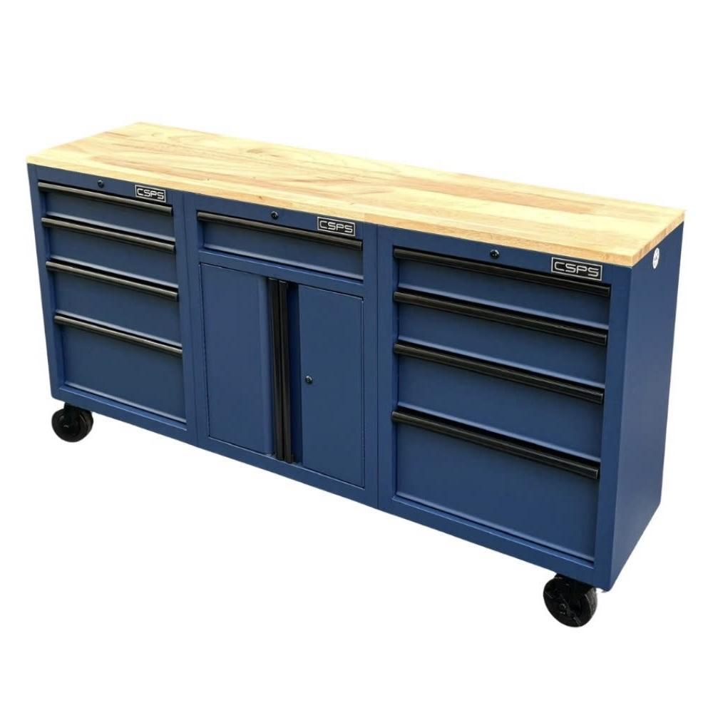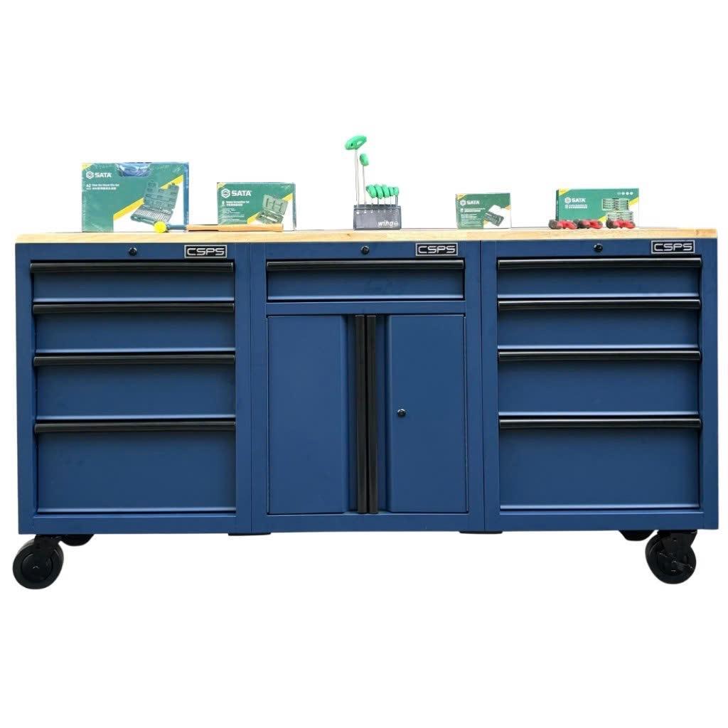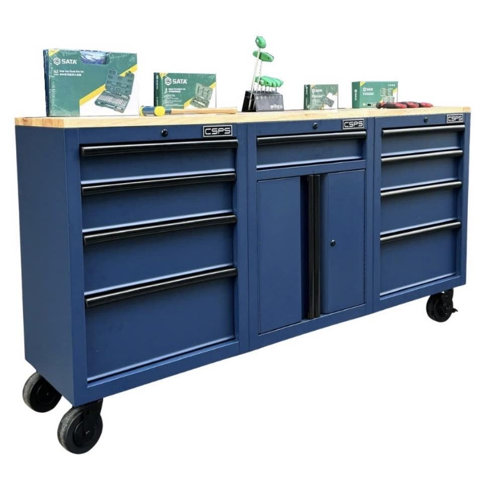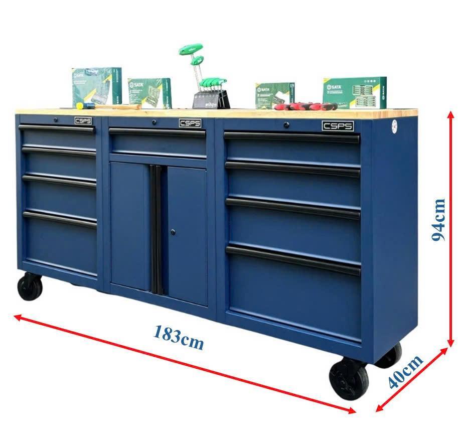 Tủ dụng cụ CSPS 183cm - 09 hộc kéo màu xanh dương mặt ván gỗ