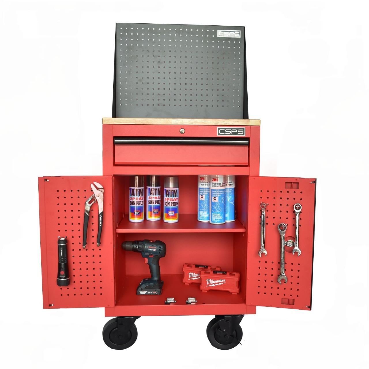 Tủ dụng cụ CSPS 61cm - 01 hộc kéo màu đỏ kèm vách lưới