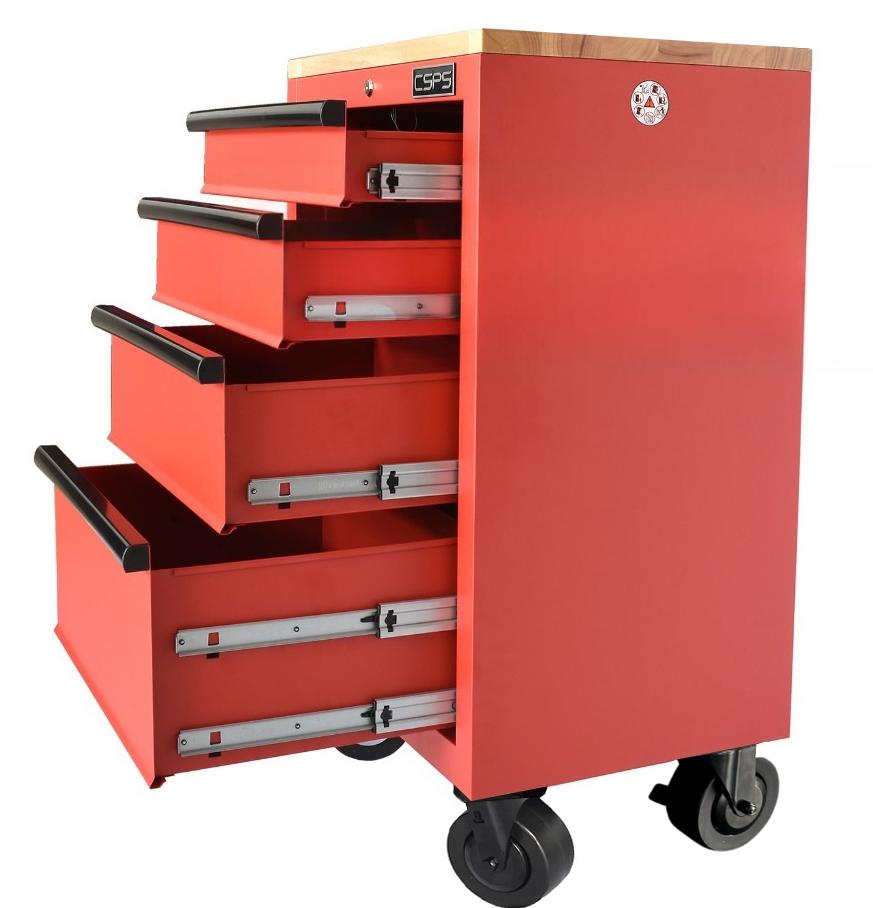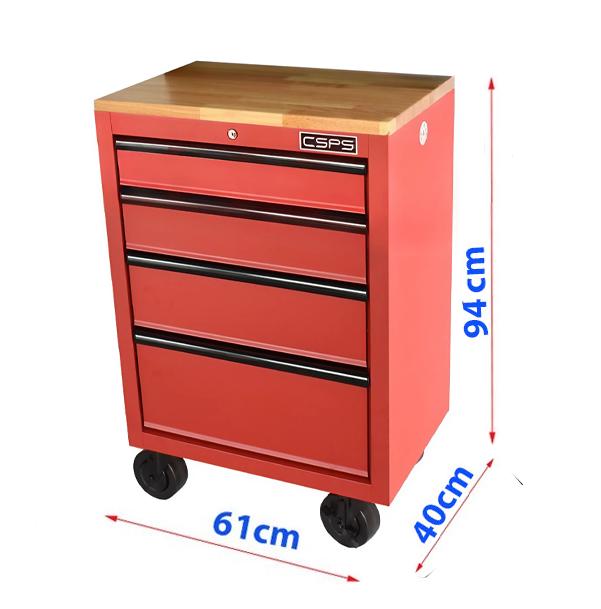 Tủ dụng cụ CSPS 61cm - 04 hộc kéo màu đỏ mặt ván gỗ