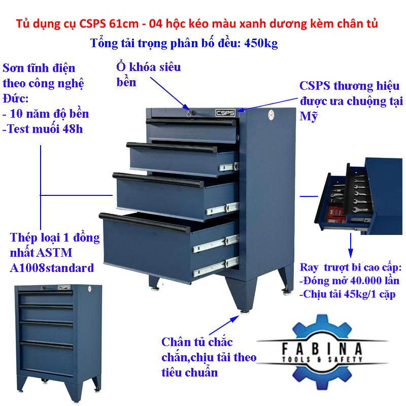Tủ dụng cụ CSPS 61cm - 04 hộc kéo màu xanh dương kèm chân tủ