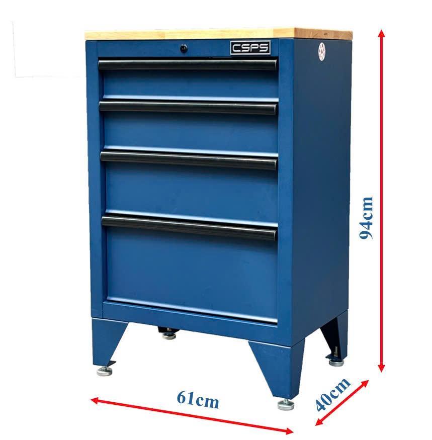 Tủ dụng cụ CSPS 61cm - 04 hộc kéo màu xanh dương kèm ván gỗ và chân tủ