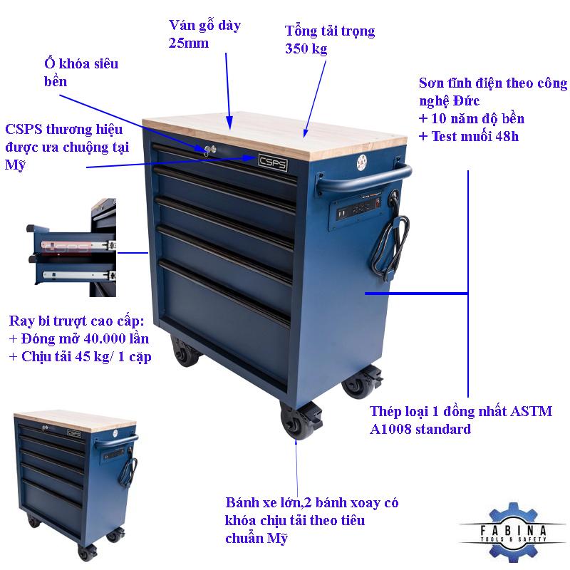 Tủ dụng cụ CSPS 76 cm – 05 hộc kéo là một thiết kế mới của CSPS dành riêng cho người thợ Việt Nam với các lợi ích nổi bật: / CSPS tool cabinet 76 cm – 05 drawers is a new design of CSPS specialized for Vietnamese with outstanding benefits: