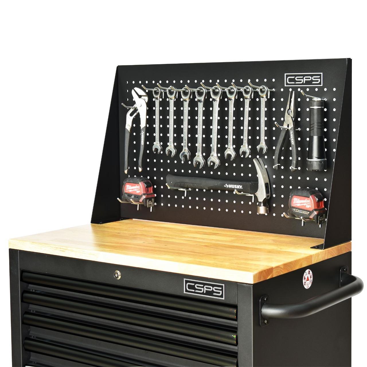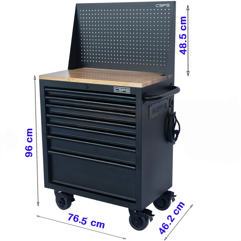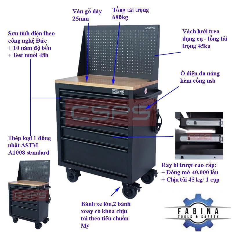 Tủ dụng cụ CSPS 76 cm + kết hợp vách lưới – 07 hộc kéo, giúp bạn sắp xếp khu vực làm việc hiệu quả, là một trang bị cần thiết cho nhà máy, garage, cửa hàng hay văn phòng làm việc / CSPS tool cabinet 76 cm – 05 drawers which is suitable for workshop, factory, garage, shop, office… will help you organize working area efficiently.