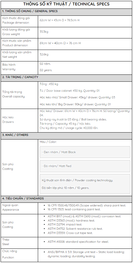 Vách ngăn tủ dụng cụ CSPS 76cm màu đen/ đỏ là một thiết kế mới của CSPS dành riêng cho người thợ Việt Nam với các lợi ích nổi bật: / Partition of tool cabinet 76cm black/ red is a new design of CSPS exclusively for Vietnamese workers with outstanding benefits.