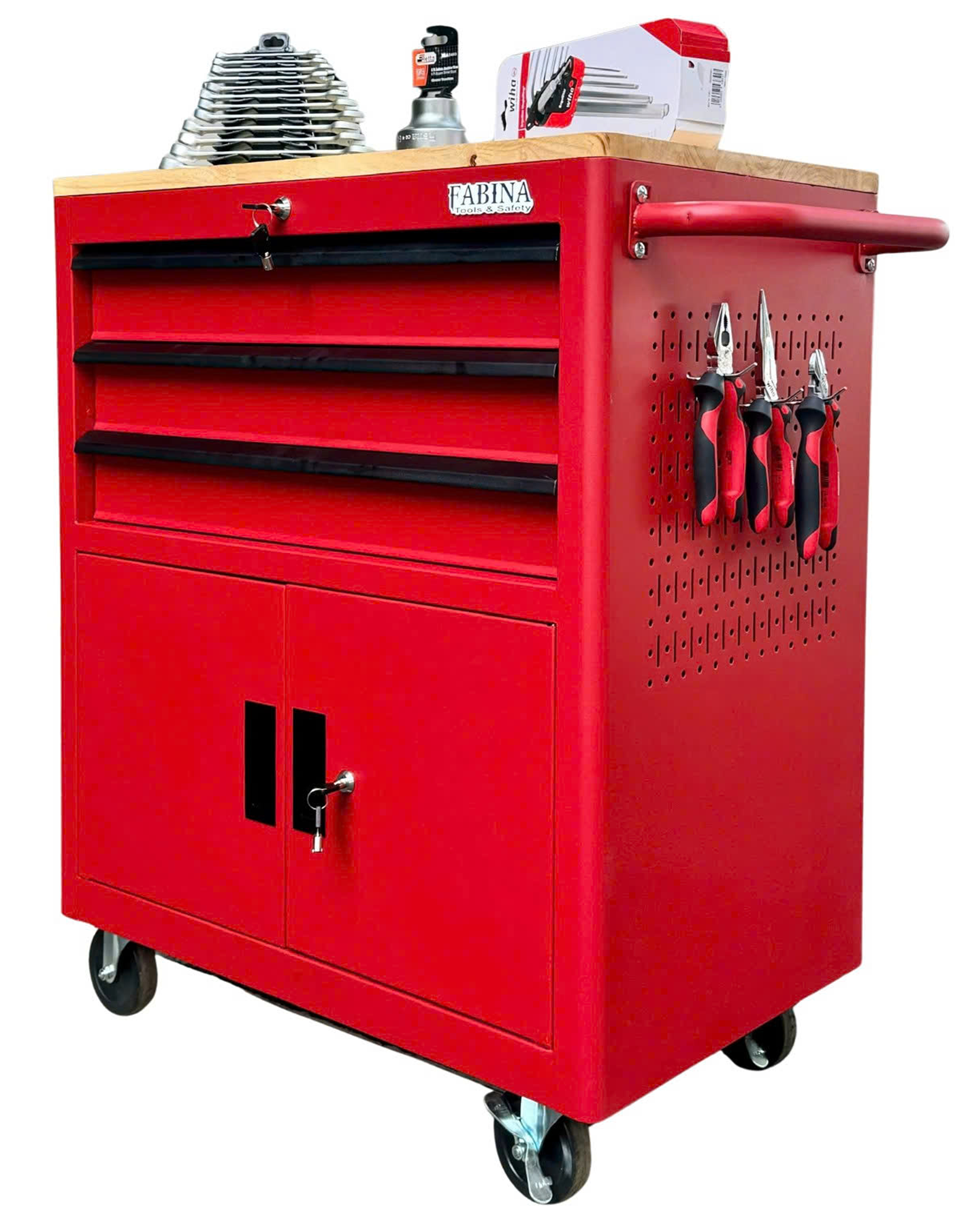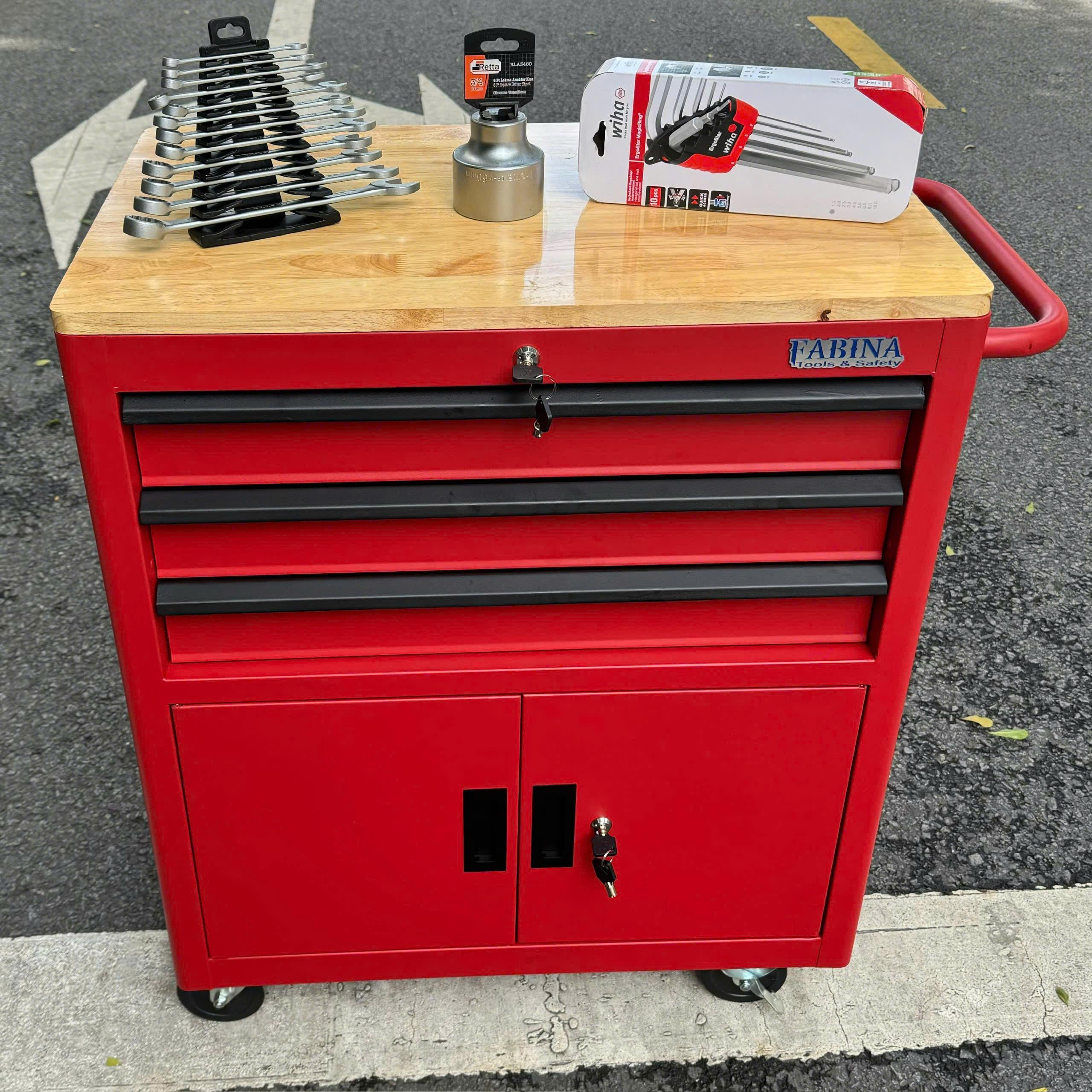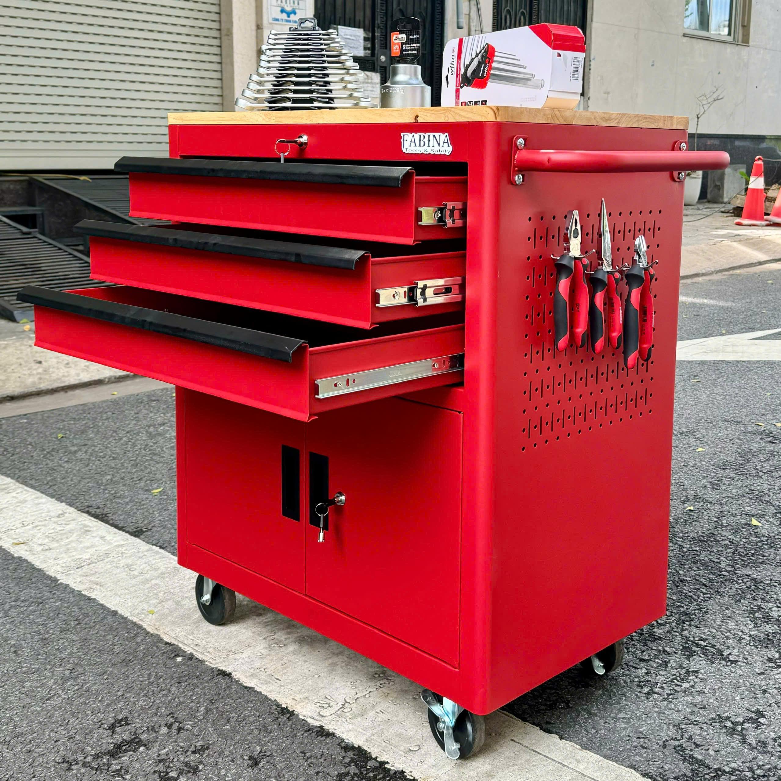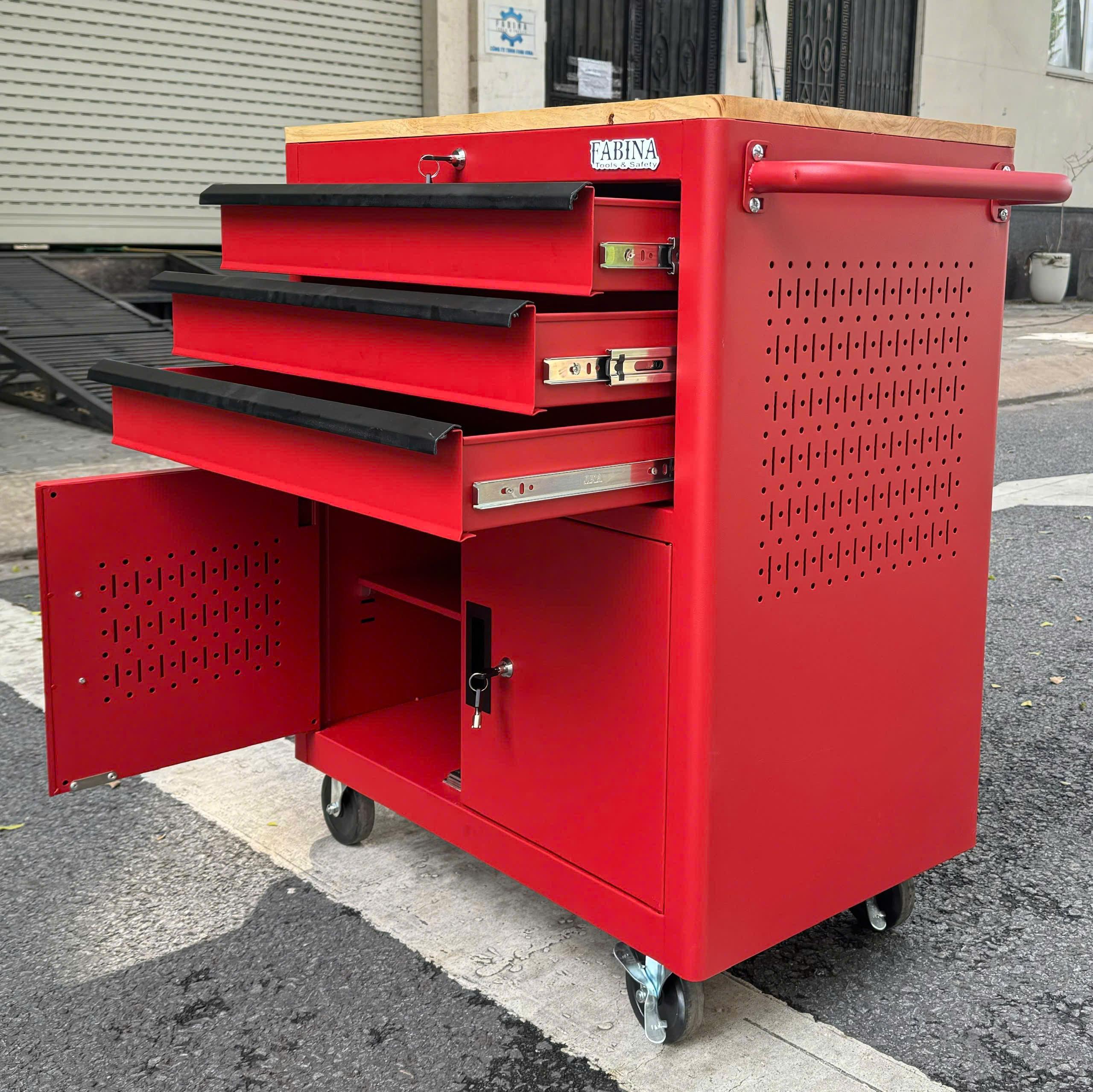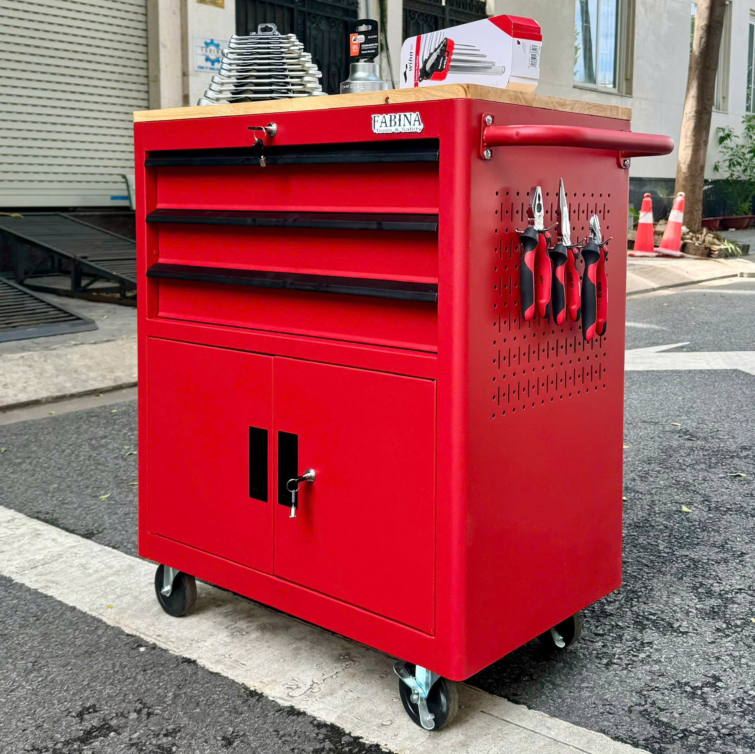 Tủ dụng cụ 3 hộc kéo 2 ngăn chứa màu đỏ Fabina