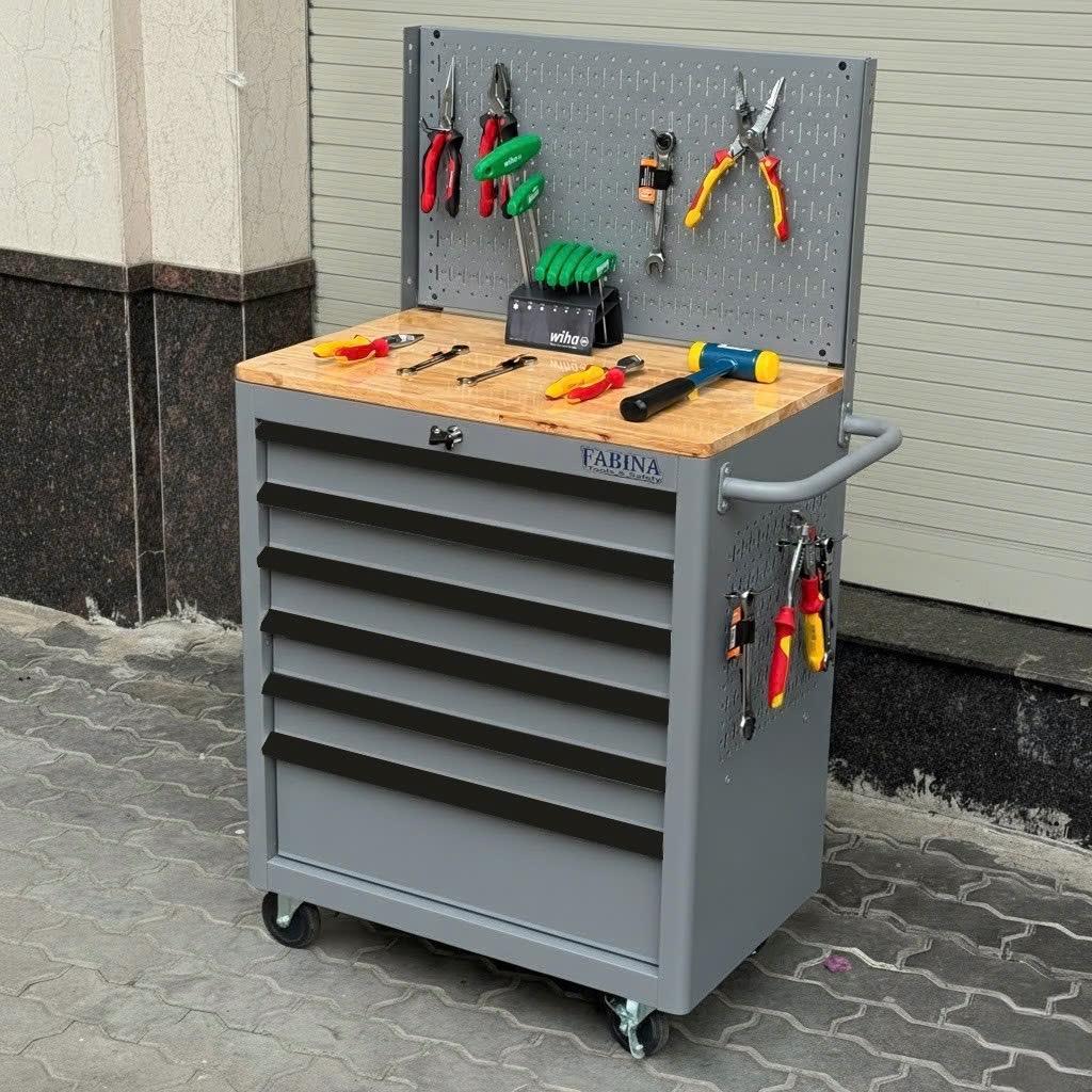 Tủ dụng cụ 6 hộc kéo màu xám kèm vách lưới Fabina