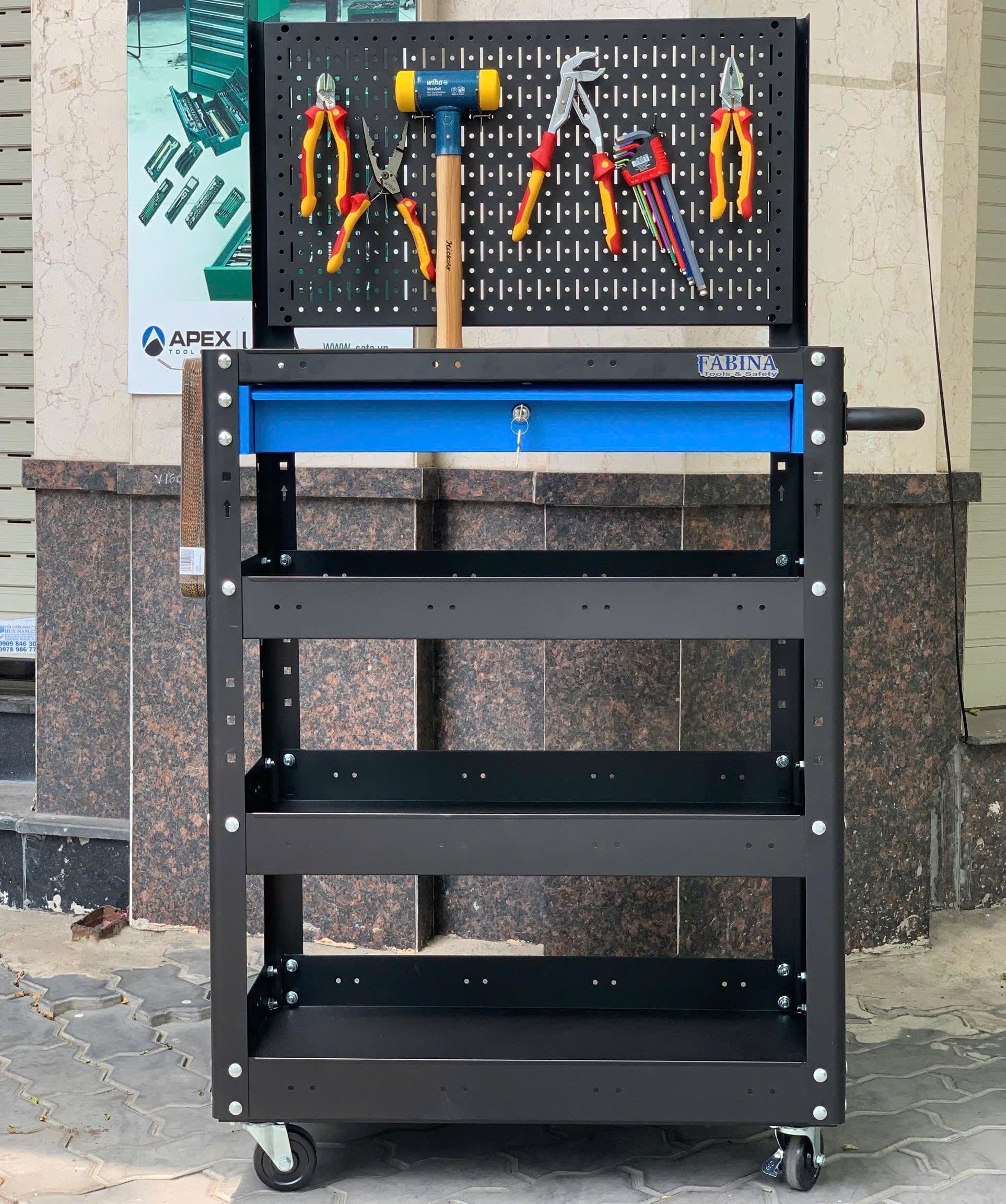 - Từ khóa: Xe đẩy FABINA, Xe đẩy 3 tầng, xe đẩy 3 ngăn, xe đẩy dụng cụ, Kệ thép di động
