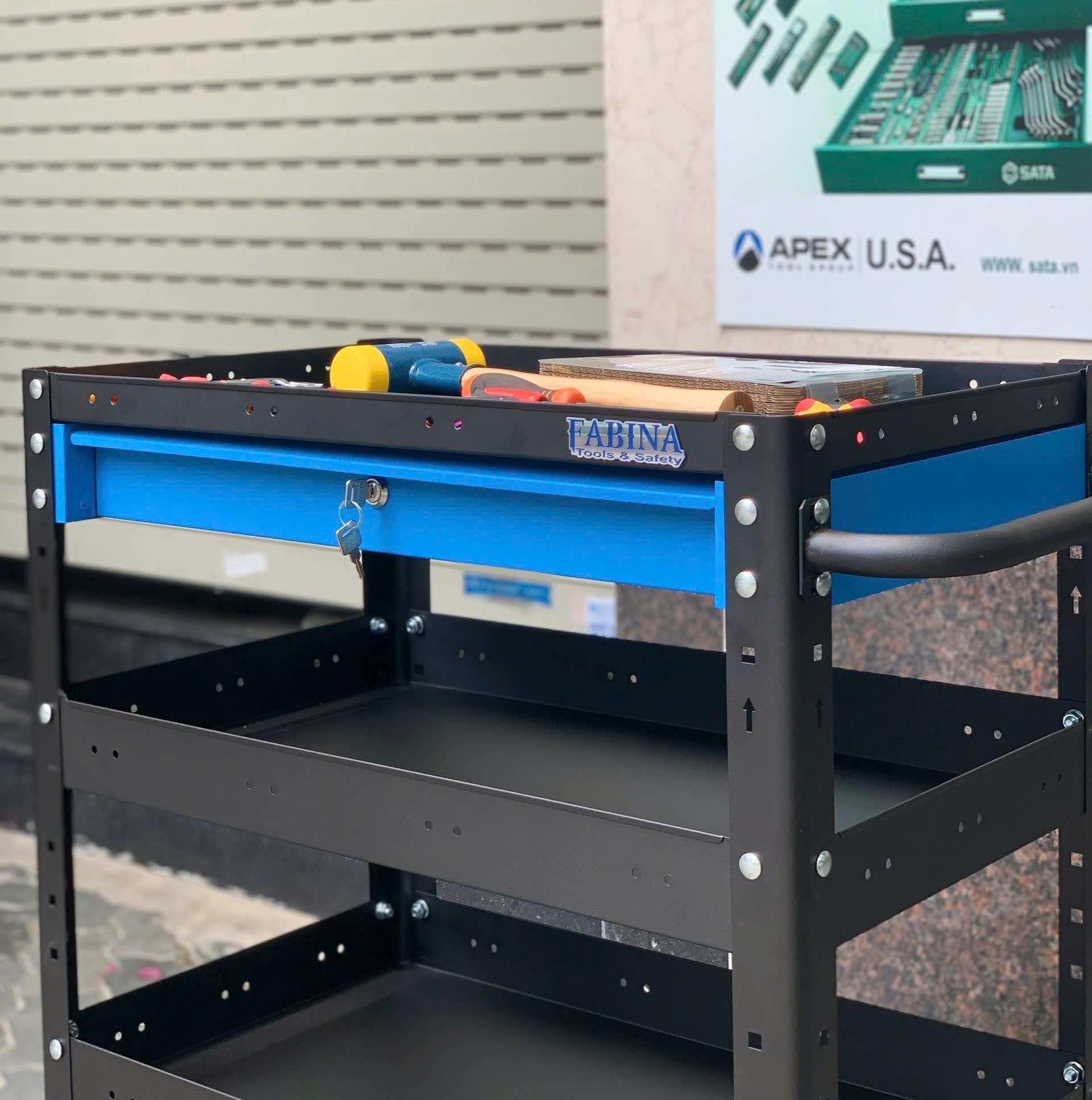- Từ khóa: Xe đẩy FABINA, Xe đẩy 3 tầng, xe đẩy 3 ngăn, xe đẩy dụng cụ, Kệ thép di động